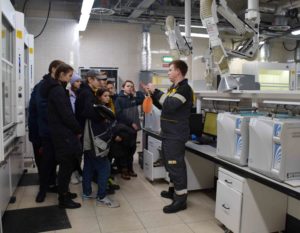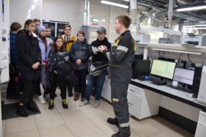 Юных гостей на автобусе провезли по территории завода, продемонстрировали работу передвижной экологической лаборатории и провели по залам испытательной лаборатории. Встречали ребят молодые специалисты предприятия, которые поделились собственным опытом трудоустройства, рассказали школьникам о производстве, выпускаемой продукции, контроле качества нефтепродуктов, о природоохранных технологиях на заводе для сокращения влияния производства на окружающую среду.