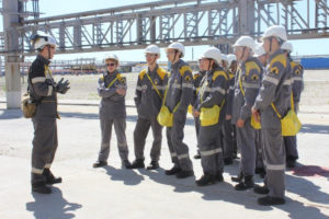 Прежде чем попасть на завод, школьников переодели в спецодежду, провели инструктаж по технике безопасности, после чего они посетили технологическую установку низкотемпературной изомеризации, товарную лабораторию и учебный полигон.