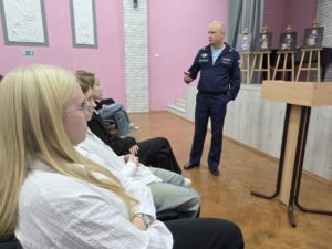 Гвардии подполковник ВДВ, заместитель начальника кафедры горной и физической подготовки РГВВДКУ имени генерала армии В.Ф.Маргелова, кандидат педагогических наук, депутат Рязанской областной Думы, ветеран боевых действий, участник СВО и кадровой программы «Герои62» Роман Иголкин приурочил лекцию ко Дню борьбы с фашизмом и антисемитизмом, который мы отмечали 9 ноября.