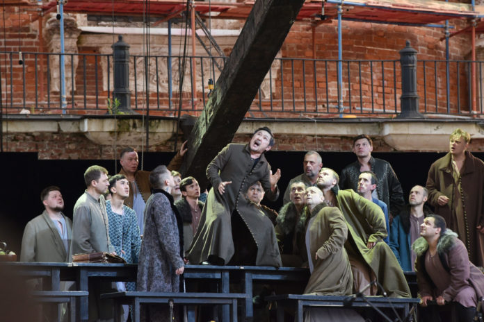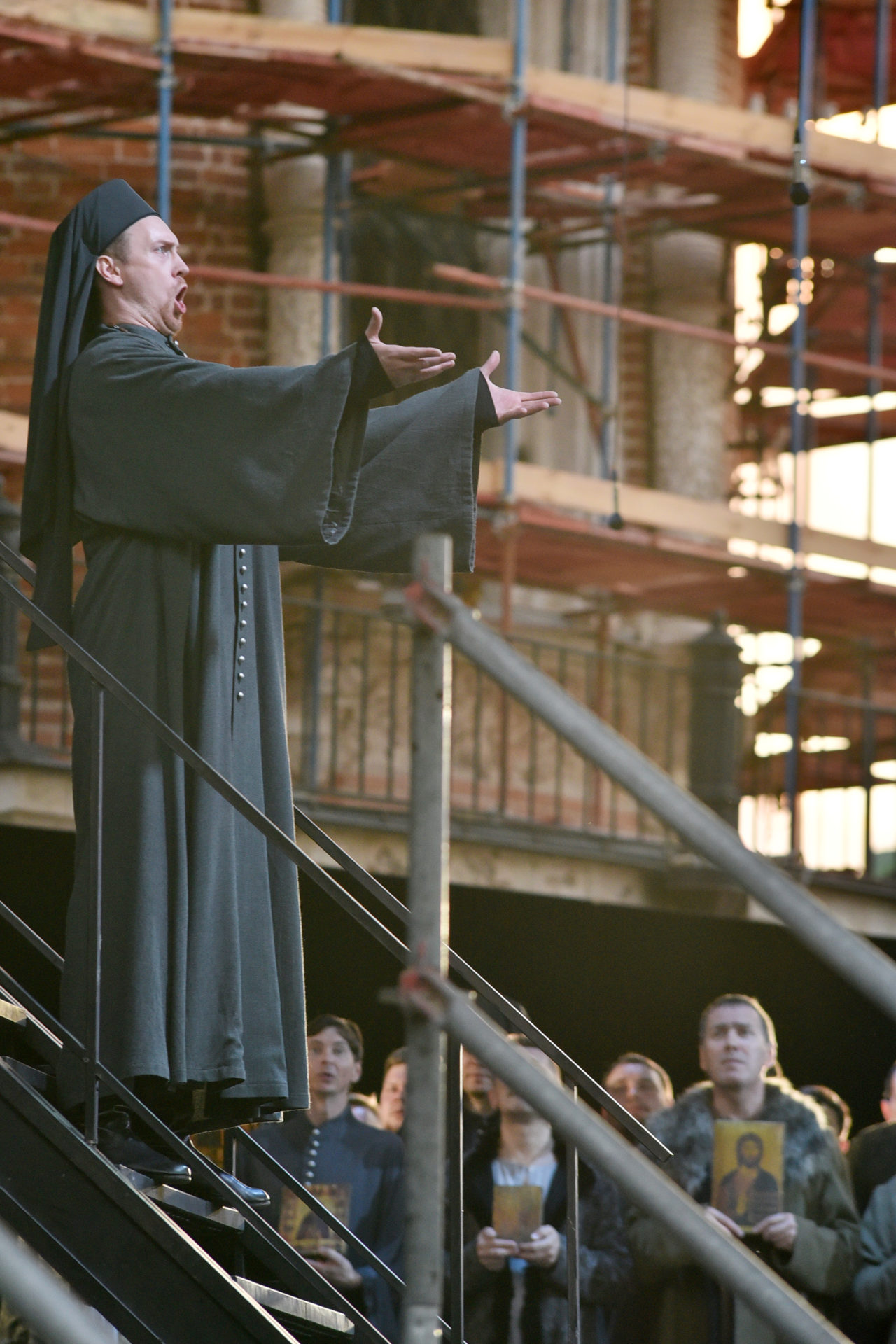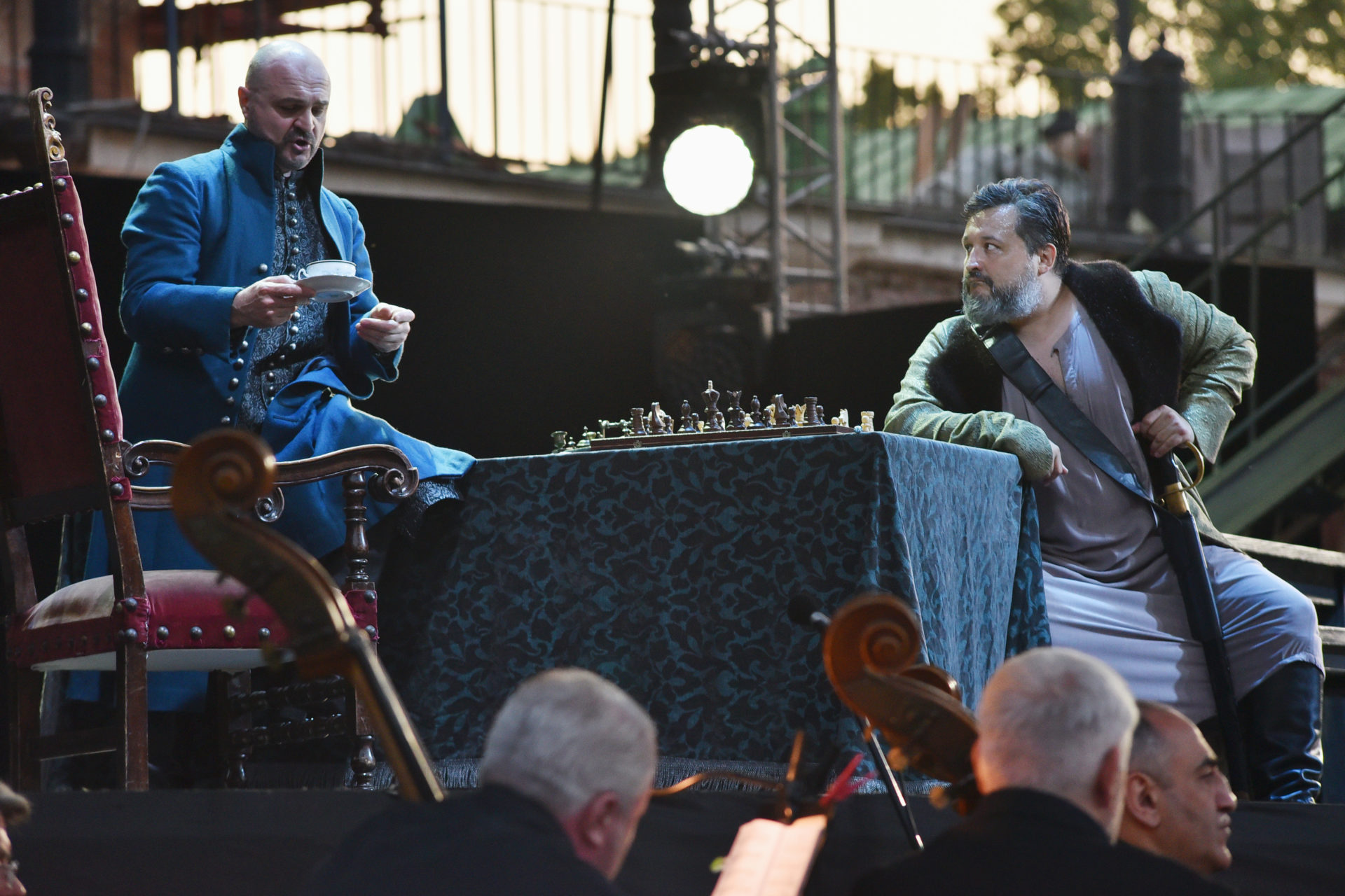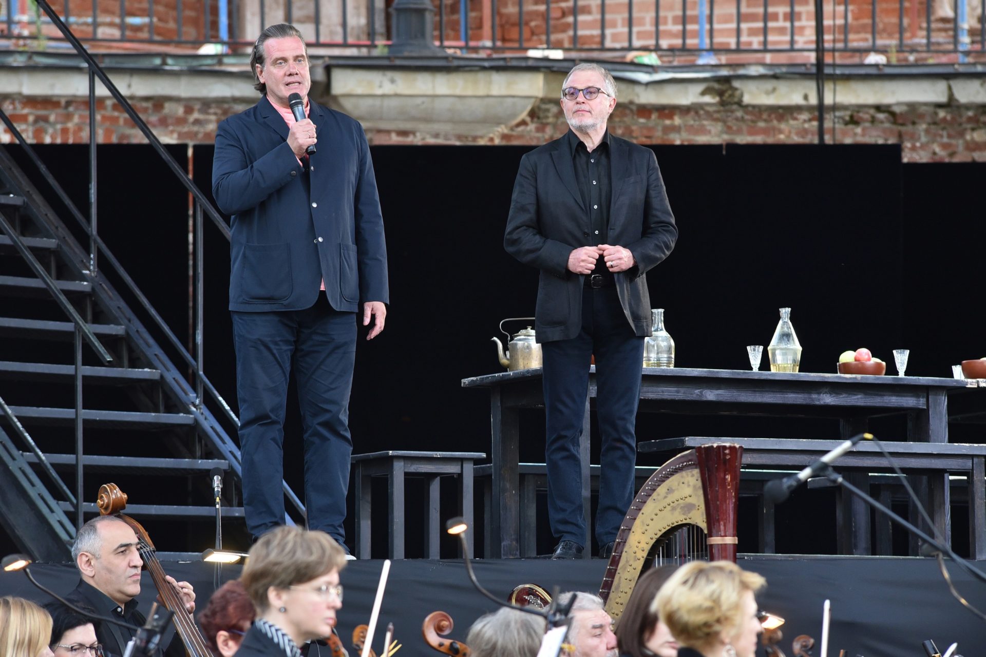 – Я сторонник того, чтобы возить оперные спектакли по замечательным местам, играть их на площадях, в кремлях, на фоне монастырей, крепостей, чтобы музыкальное оперное искусство стало более доступным и обрело новых поклонников и любителей, – рассказал до начала спектакля художественный руководитель оперной труппы театра, главный режиссер Александр Титель.