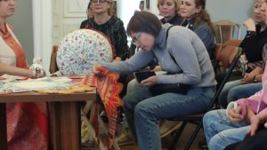 Ирина Николаевна провела лекцию о видах кружева и приспособлениях для этого ремесла. Гостям встречи показали примеры разных кружев и рассказали о работе над уникальными куклами-оберегами – высотой от пары сантиметров до полуметра.