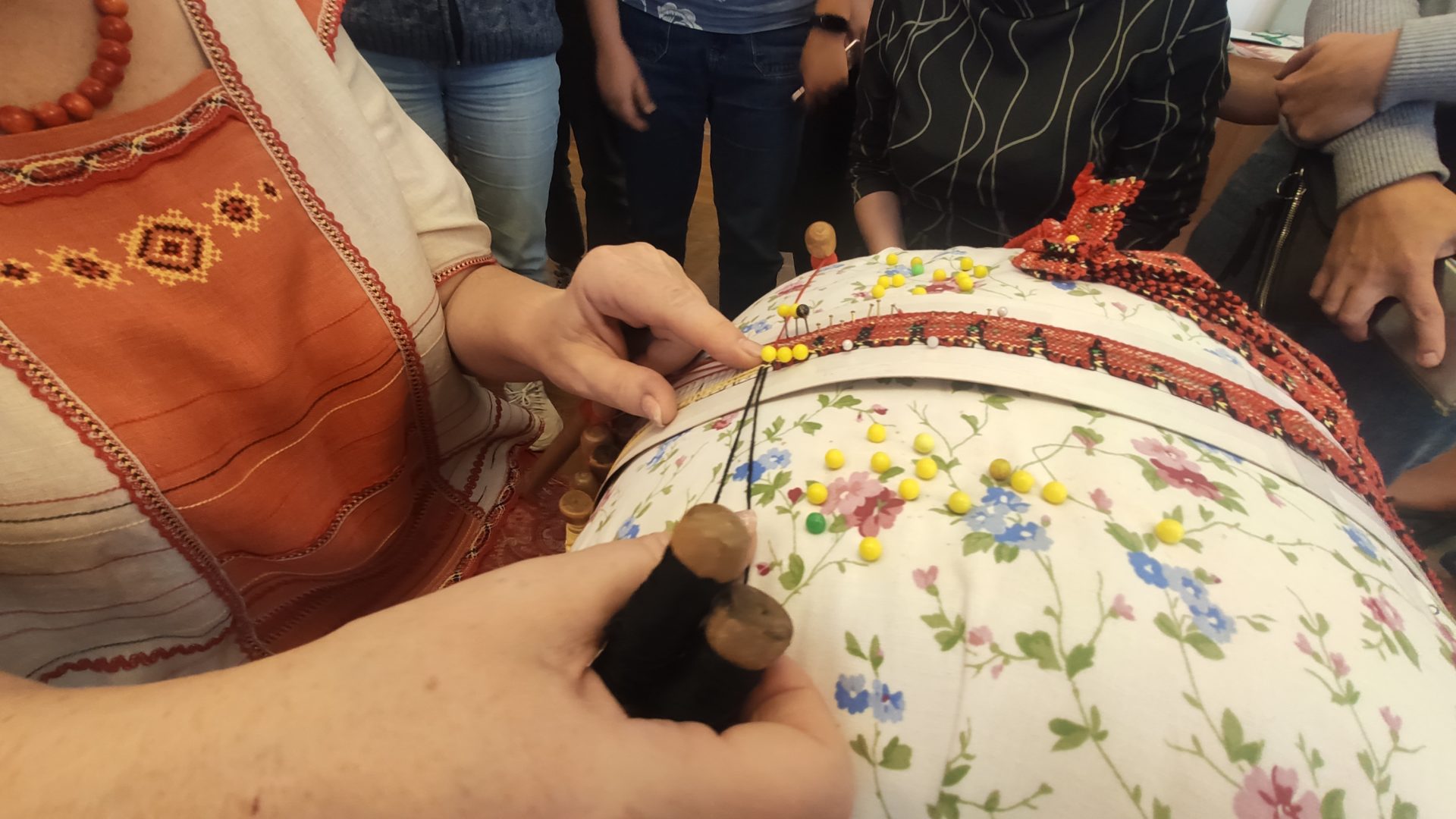 Ирина Николаевна провела лекцию о видах кружева и приспособлениях для этого ремесла. Гостям встречи показали примеры разных кружев и рассказали о работе над уникальными куклами-оберегами – высотой от пары сантиметров до полуметра.