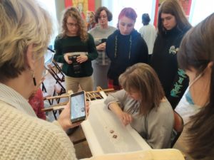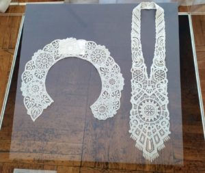 Венизным кружевом – ажурной вышивкой «белым по белому» – традиционно занимаются в Кадомском районе. Сейчас ООО «Кадомский вениз» создает вещи с ручной и машинной вышивкой. Мастер-класс в музее провела вышивальщица Виктория Рябчикова, которая трудится на фабрике больше 20 лет. Она показала, как создается женский декоративный галстук, и ответила на вопросы зрителей о техниках работы и уходе за венизным кружевом.