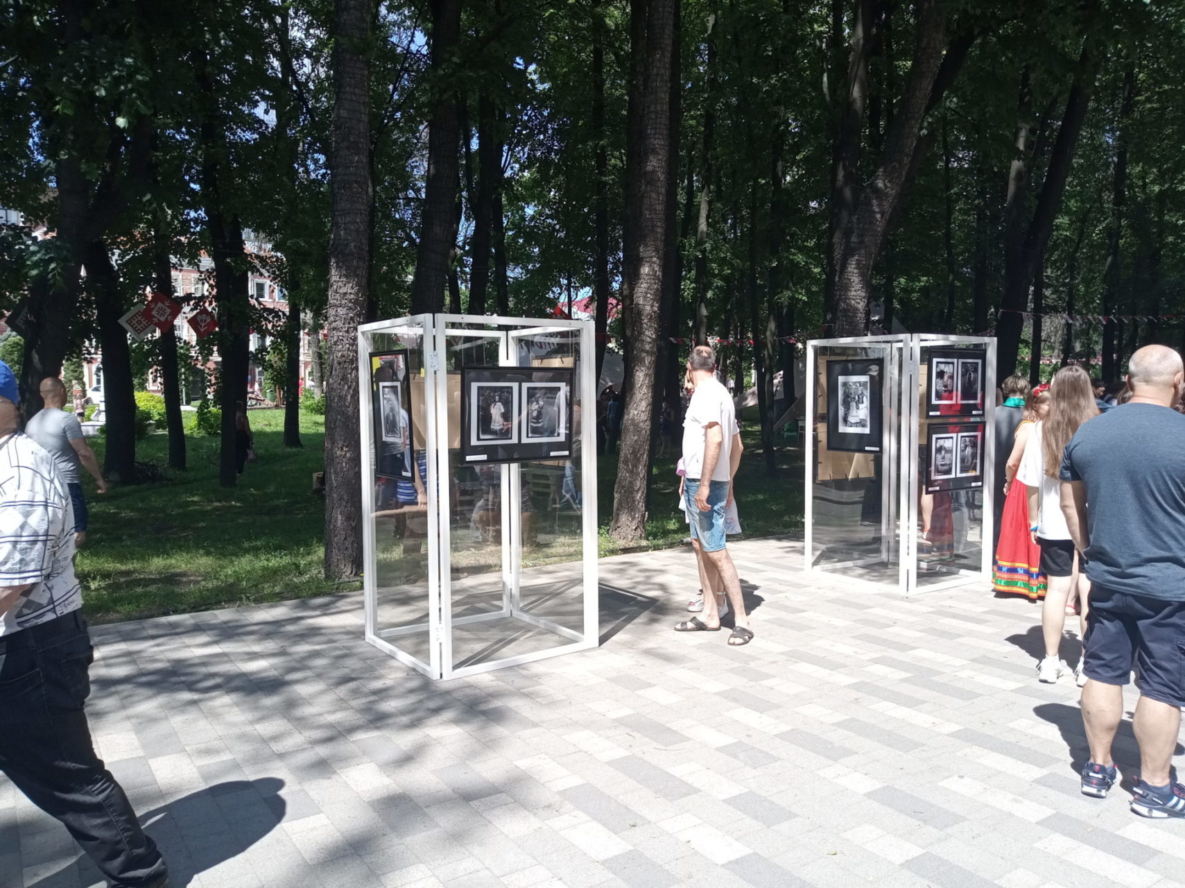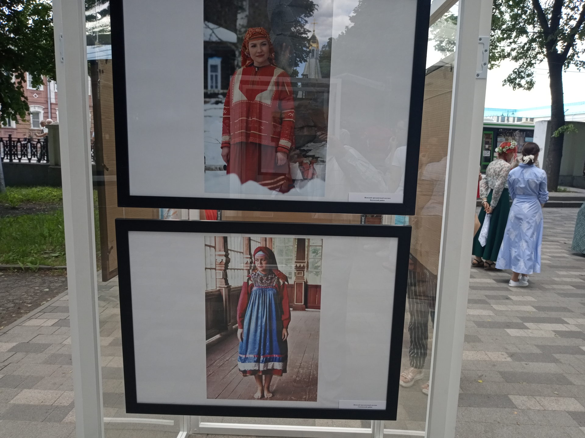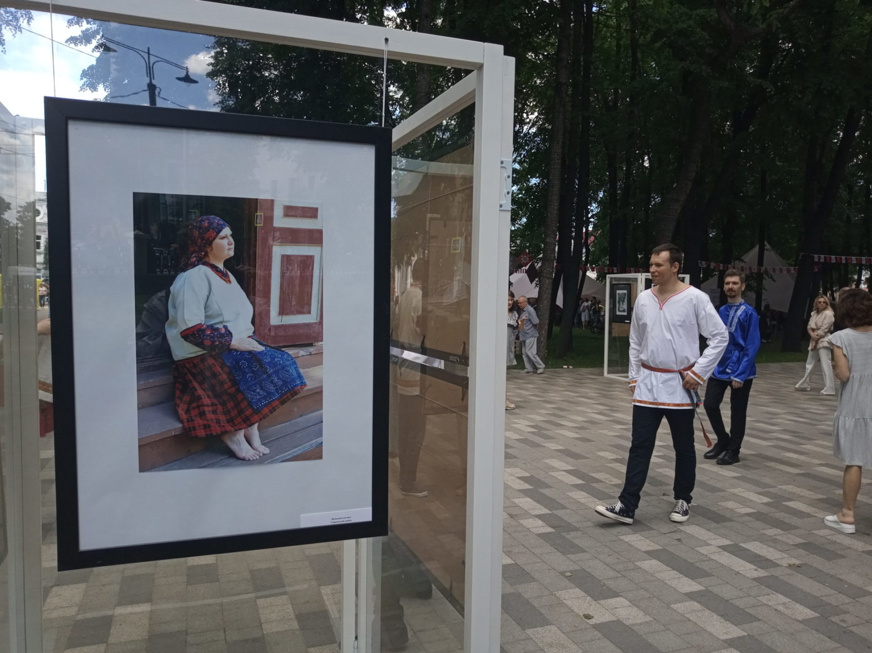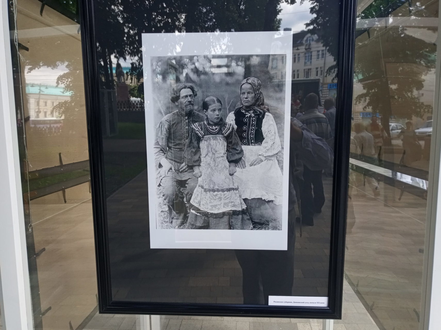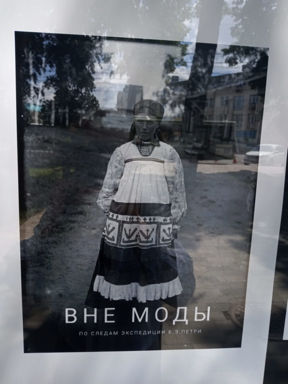 Выставка дореволюционных фотографий крестьянских костюмов открылась на аллее под открытым небом в парке рязанского кремля. Ее название – «Вне моды». Она рассказывает о том, как одевались крестьяне и их дети в отдаленных уездах Рязанской губернии в 1909 году. Именно тогда здесь побывал Бернгард Петри, этнограф и антрополог со своей экспедицией. Ученый ставил своей задачей изучить южнорусский народный костюм нескольких губерний, в том числе и Рязанской, который считается наиболее древним. Он включает в себя так называемый поневный ансамбль, в комплект которого входили: холщовая рубаха с косыми поликами, распашная понева для замужних женщин, передник-завеска, запон, головной убор с высокими рогами и пояс с широким насовом. Рязанские костюмы разных уездов отличались массивностью и шириной. На старинных фотографиях запечатлены изначальные костюмы, которые умели изготавливать в каждой семье кустарными методами. Секреты мастерства передавались из поколения в поколение. Кроме старинных фотографий, в экспозицию включили и изображения современных реконструкций рязанского костюма.