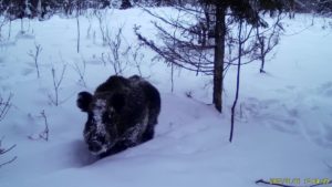 Кабан – существо толстое и коротконогое, и кабанья тропа похожа на траншею в снегу. Чем больше кабанов пройдет по тропе, тем удобнее она будет. Впереди идет большой крупный кабан, самка, реже – секач, а позади подсвинки и сеголетки.