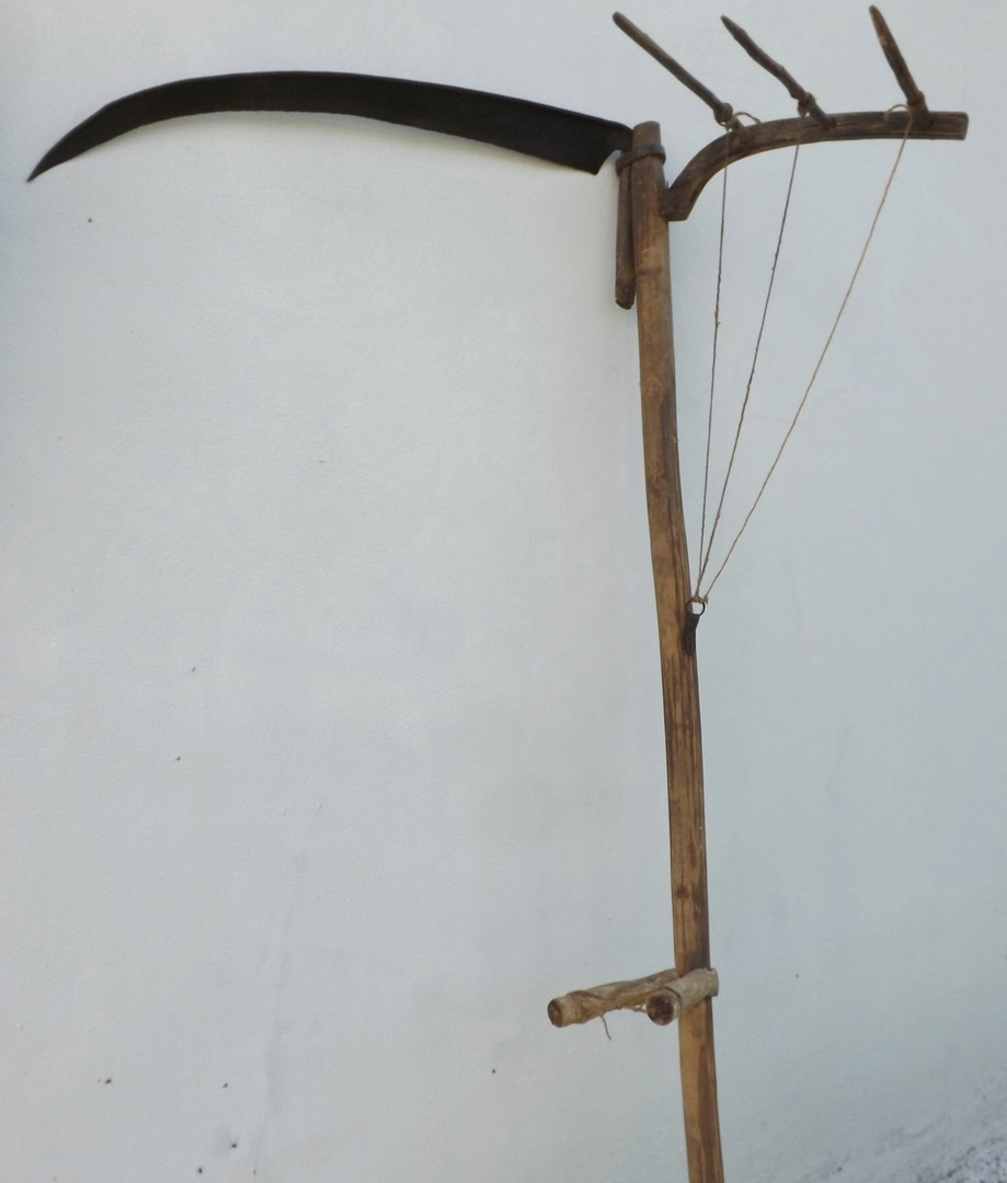 И косы были не простые, а со специальными приспособлениями крюками – грабками, полотном. Коса с грабками имеет вид граблей с длинными зубьями на колодке, крепившейся вместе с косой к основанию рукояти.