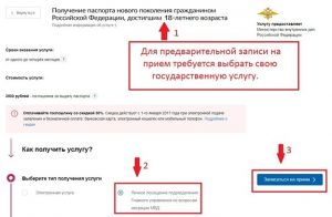 Запись на прием нужна для подачи оригиналов документов при подаче заявления в электронном виде или для подачи документов в бумажном виде. Для подачи заявления в электронном виде необходимо сначала выбрать пункт «Электронная услуга», заполнить анкету, дождаться приглашения, а затем записываться на прием.