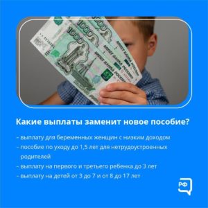 Выплата заменит несколько видов господдержки с периода беременности женщины до 17-летия ребенка.