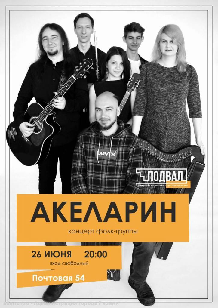 В 20.00 на творческой площадке выступит группа “Акеларин”. Коллектив исполнит народные мелодии на необычных инструментах.