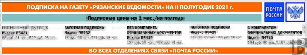 Подписаться на почте можно и на наше издание. Оформить электронную подписку на «Рязанские ведомости» можно по ссылке. Покупать по отдельности наши номера можно здесь.