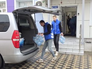 Перед отправкой по традиции волонтеры собираются в штабе, общаются за чашкой чая, занимаются погрузкой гуманитарной помощи. С собой везут необходимые сезонные вещи, тёплые одеяла, продукты питания и подарки нашим бойцам.