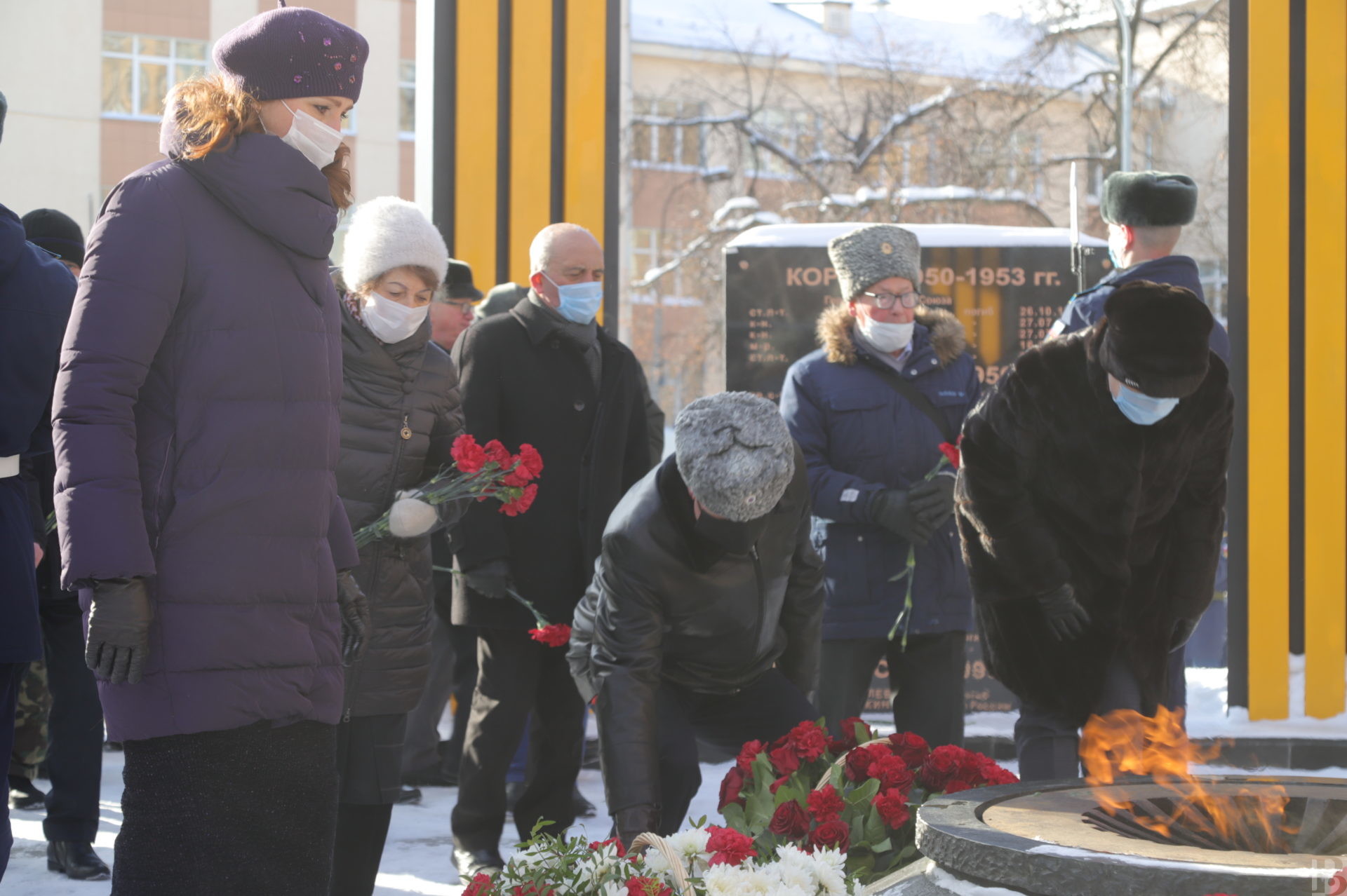 Красные гвоздики к Вечному огню возложили представители власти, общественности, воинских подразделений, ветераны и родственники участников локальных конфликтов.