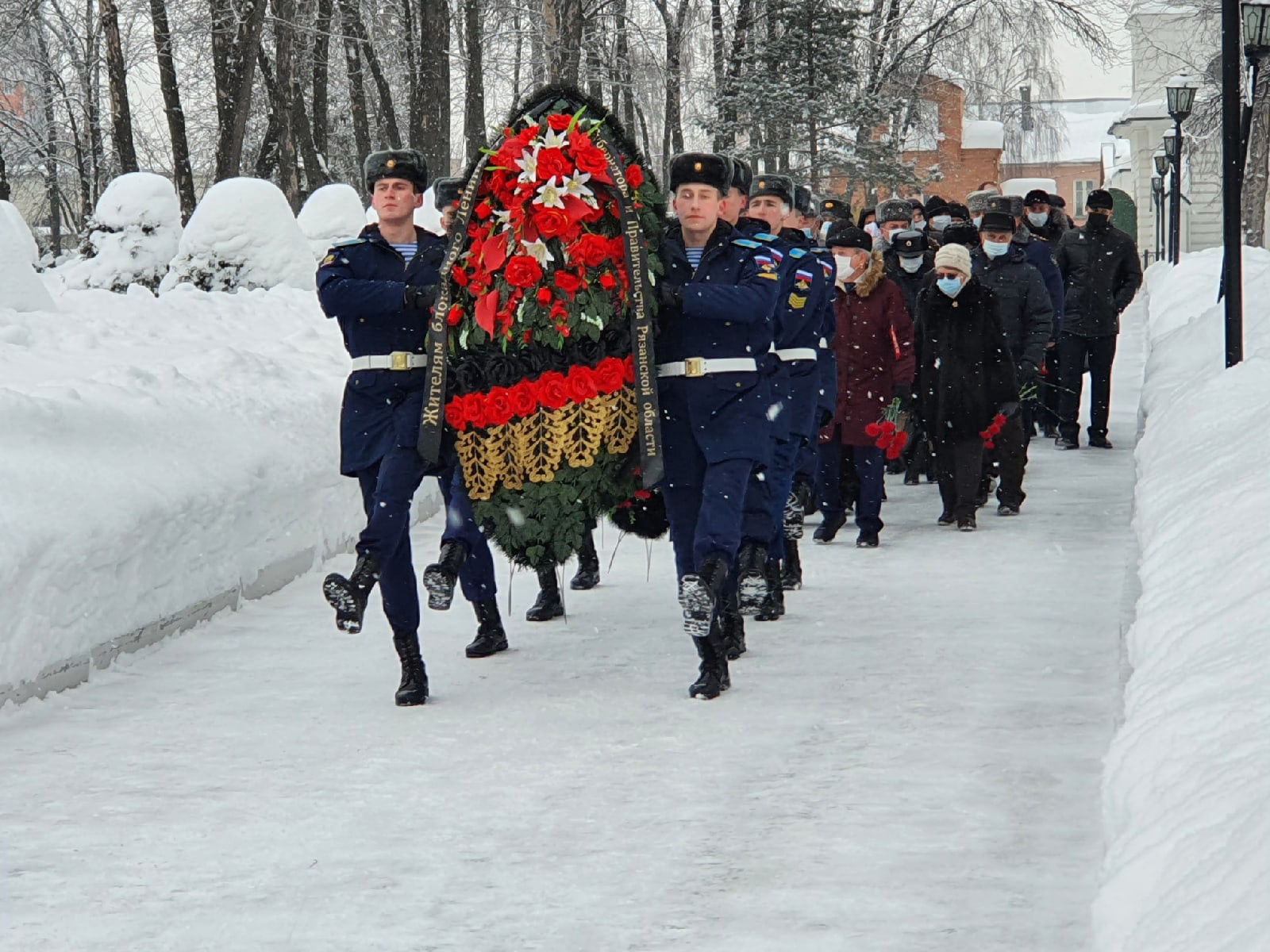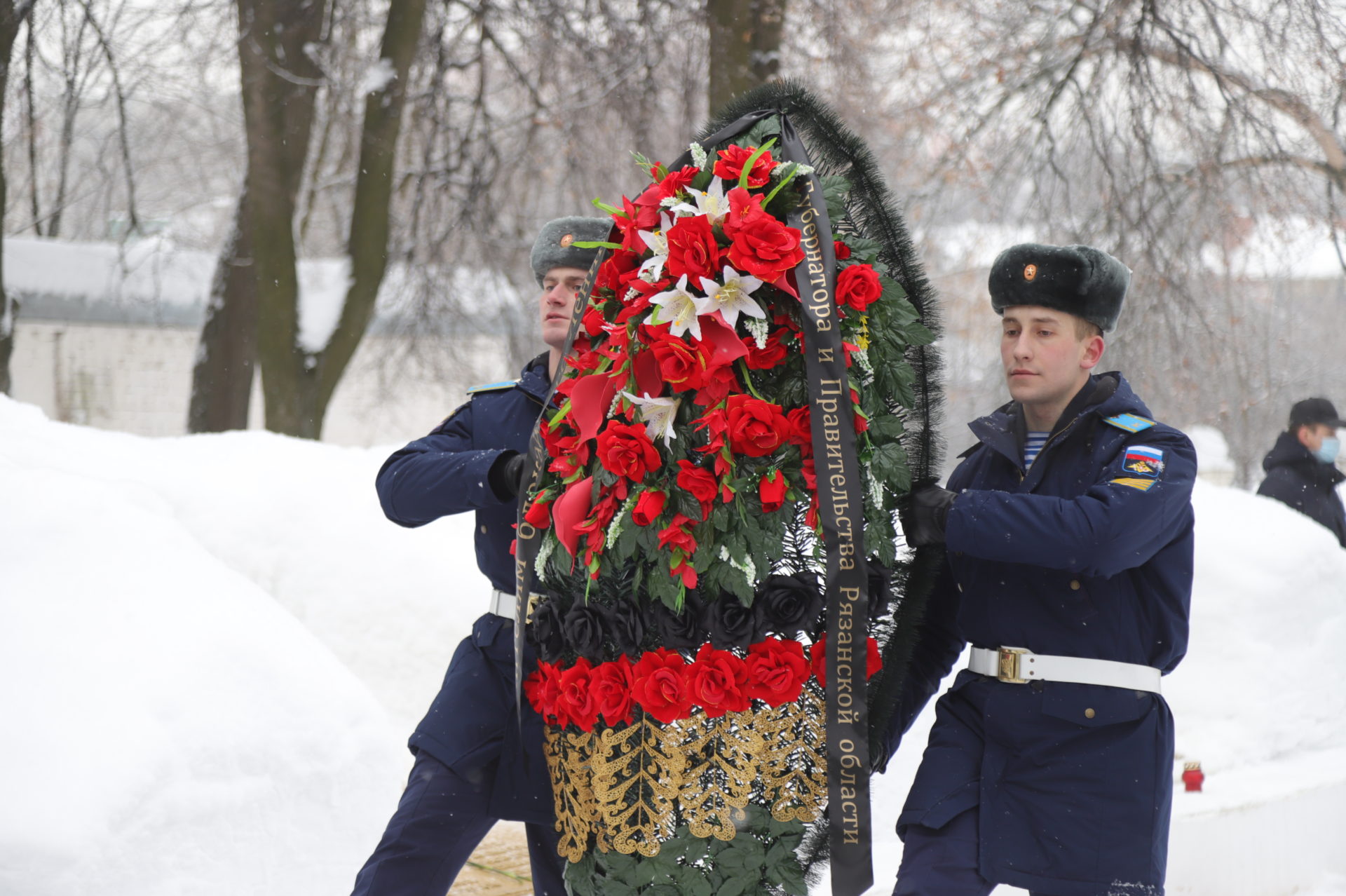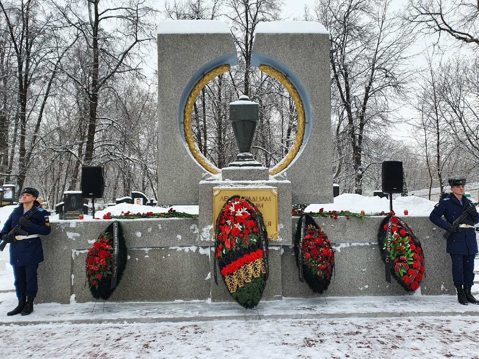 При защите Ленинграда погибли около 12 тысяч рязанцев. В память о погибших жителях и защитниках блокадного Ленинграда на церемонии возложения цветов была объявлена минута молчания. Полную тишину нарушал лишь звук метронома. Прозвучали три залпа ружейного салюта. Военный оркестр исполнил Гимн России.