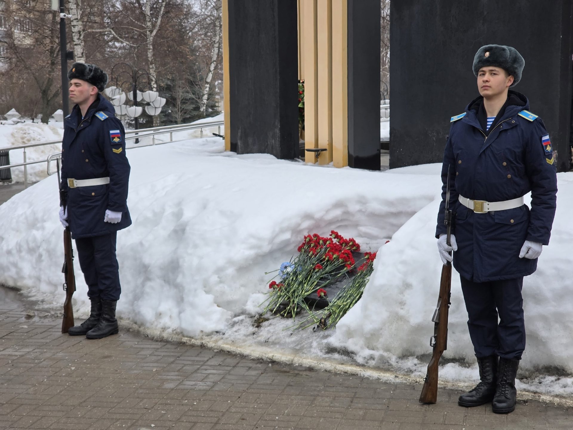 Первыми цветы к гранитной плите с землёй из Аргунского ущелья у основания памятника погибшим в локальных воинах возложили депутат Рязанской областной Думы, Герой Советского Союза Юрий Плугин и заместитель начальника РГВВДКУ
