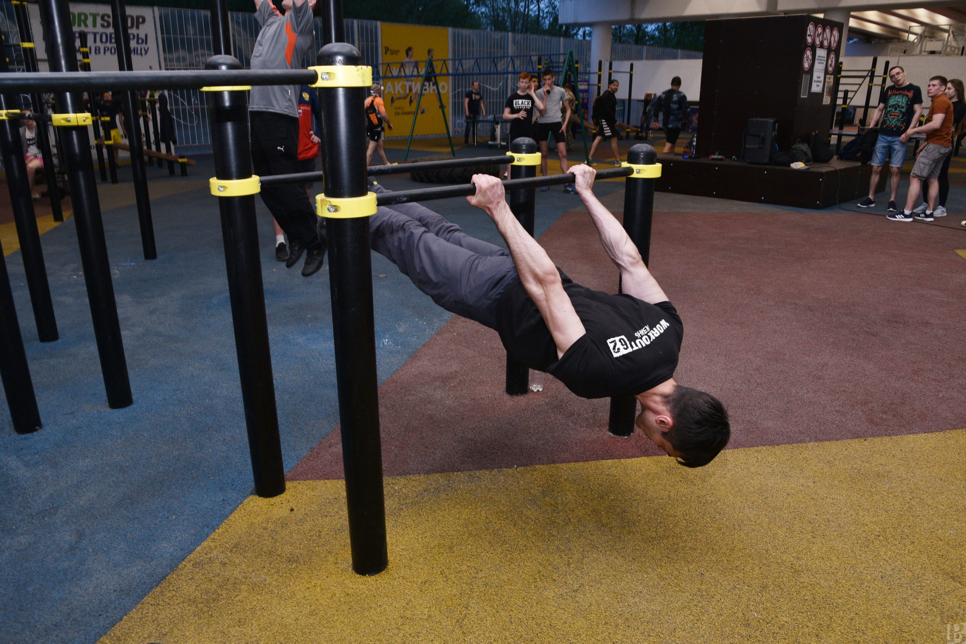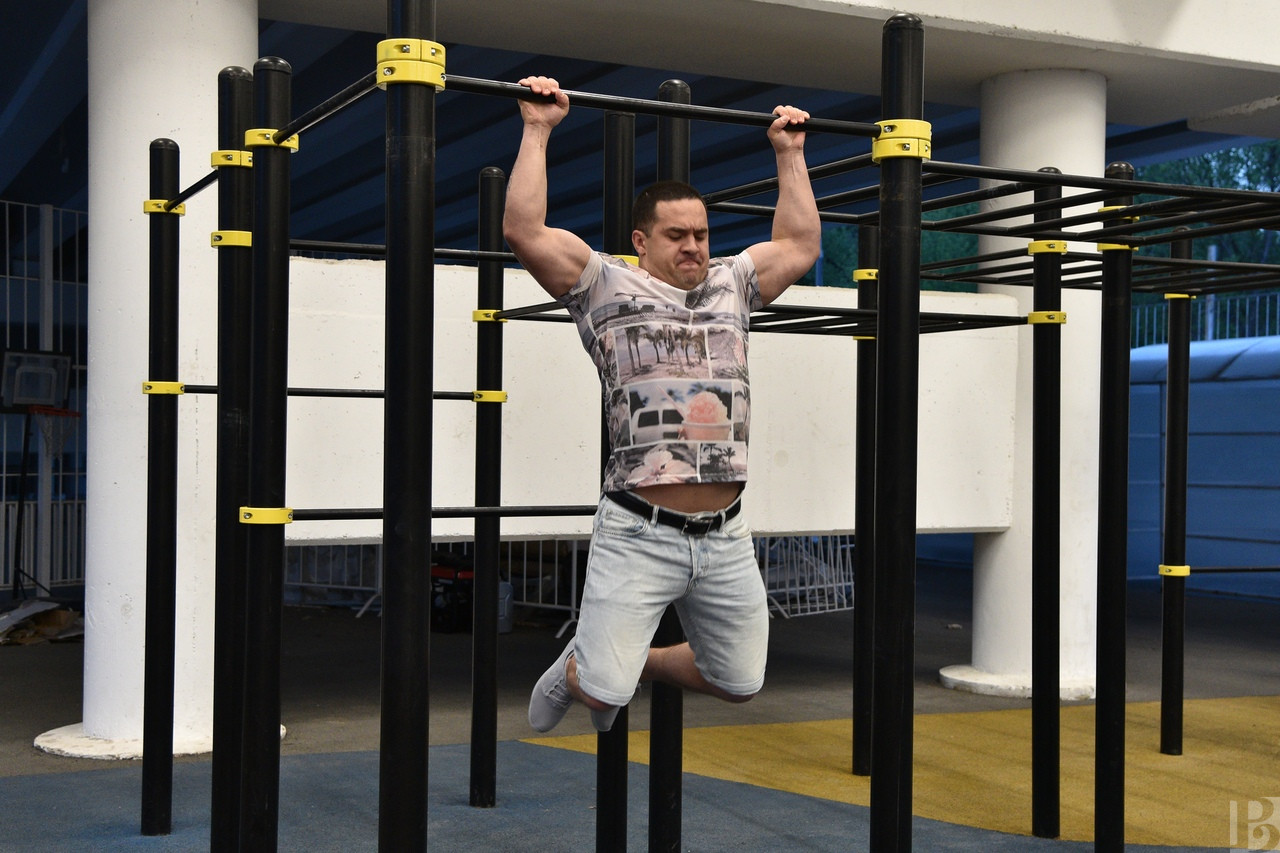 Акция «Подтянись за победу» прошла в регионах России, в том числе и в Рязанской области, в канун Дня Великой Победы. Рязанскую площадку региональная федерация воздушно-силовой атлетики организовала в лесопарке.