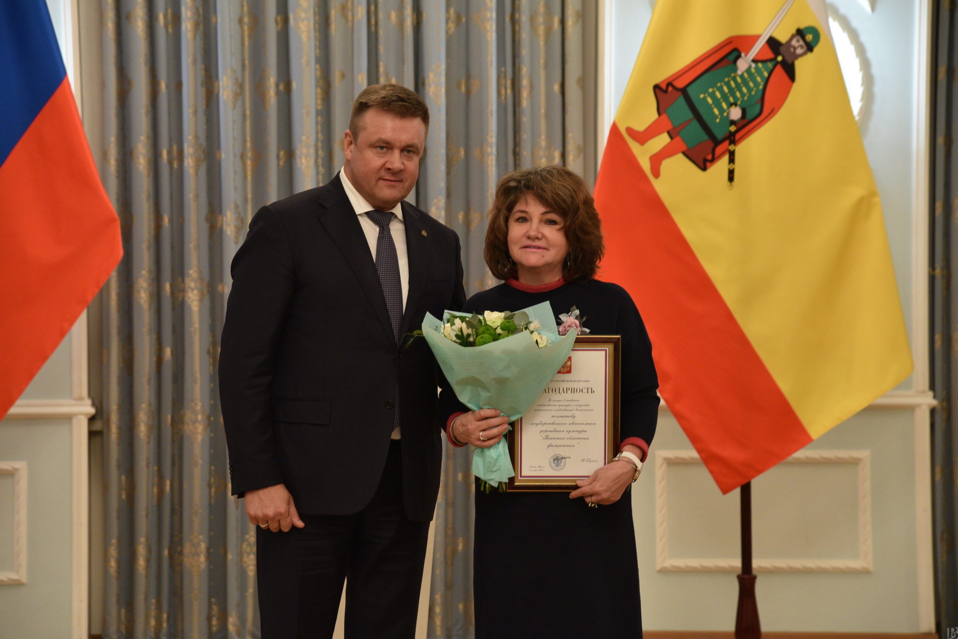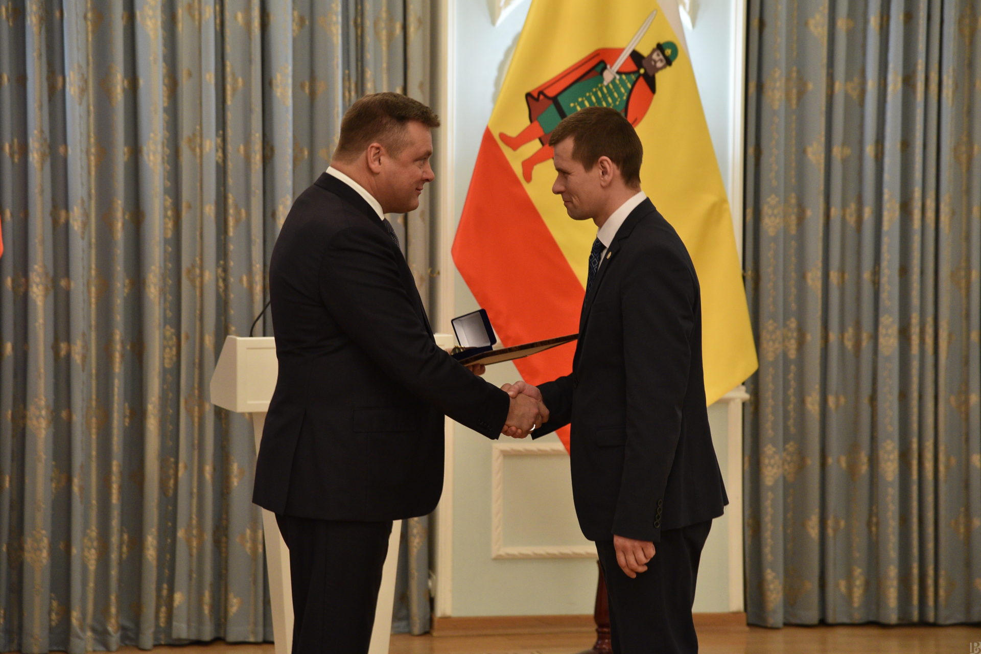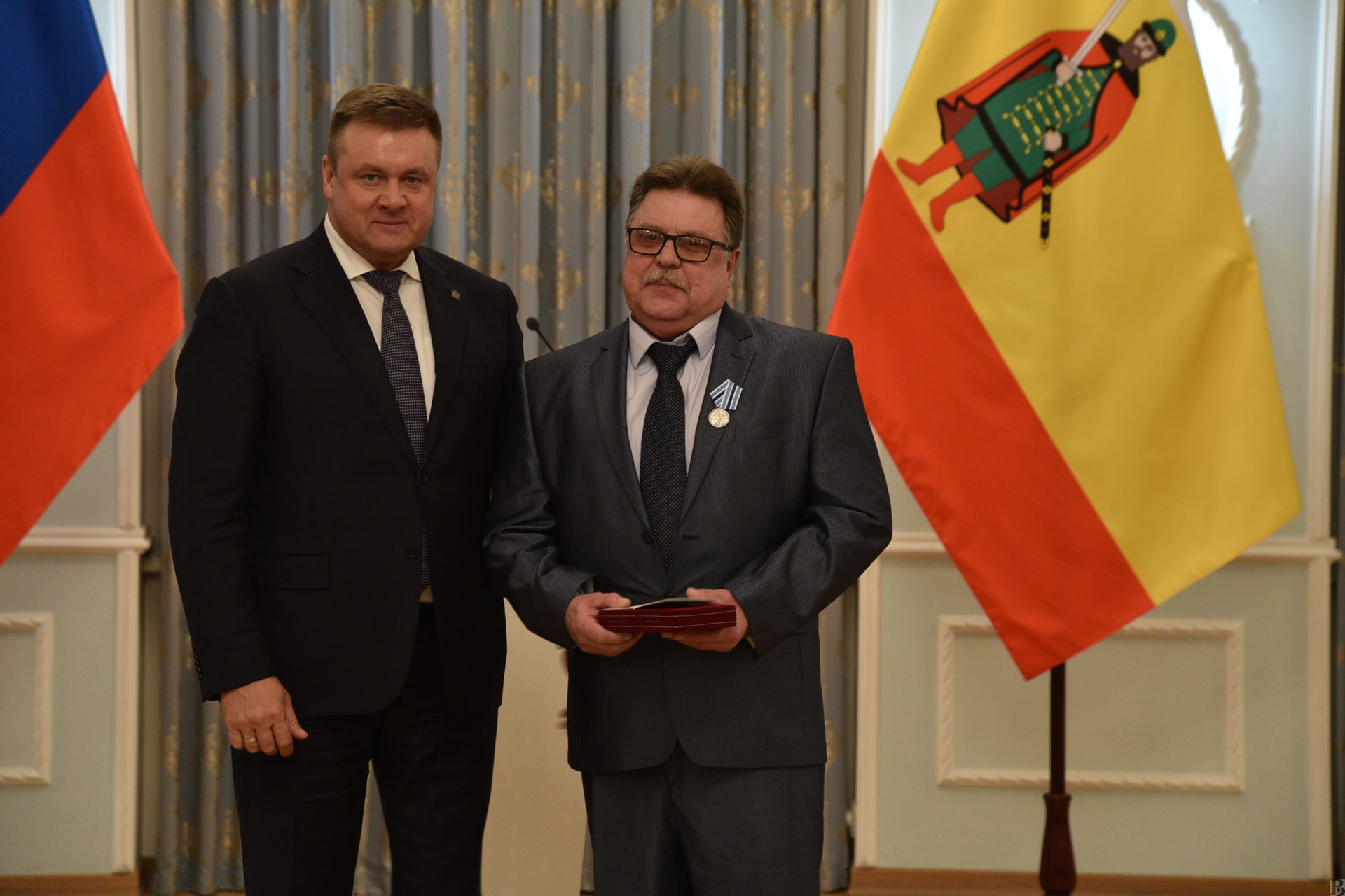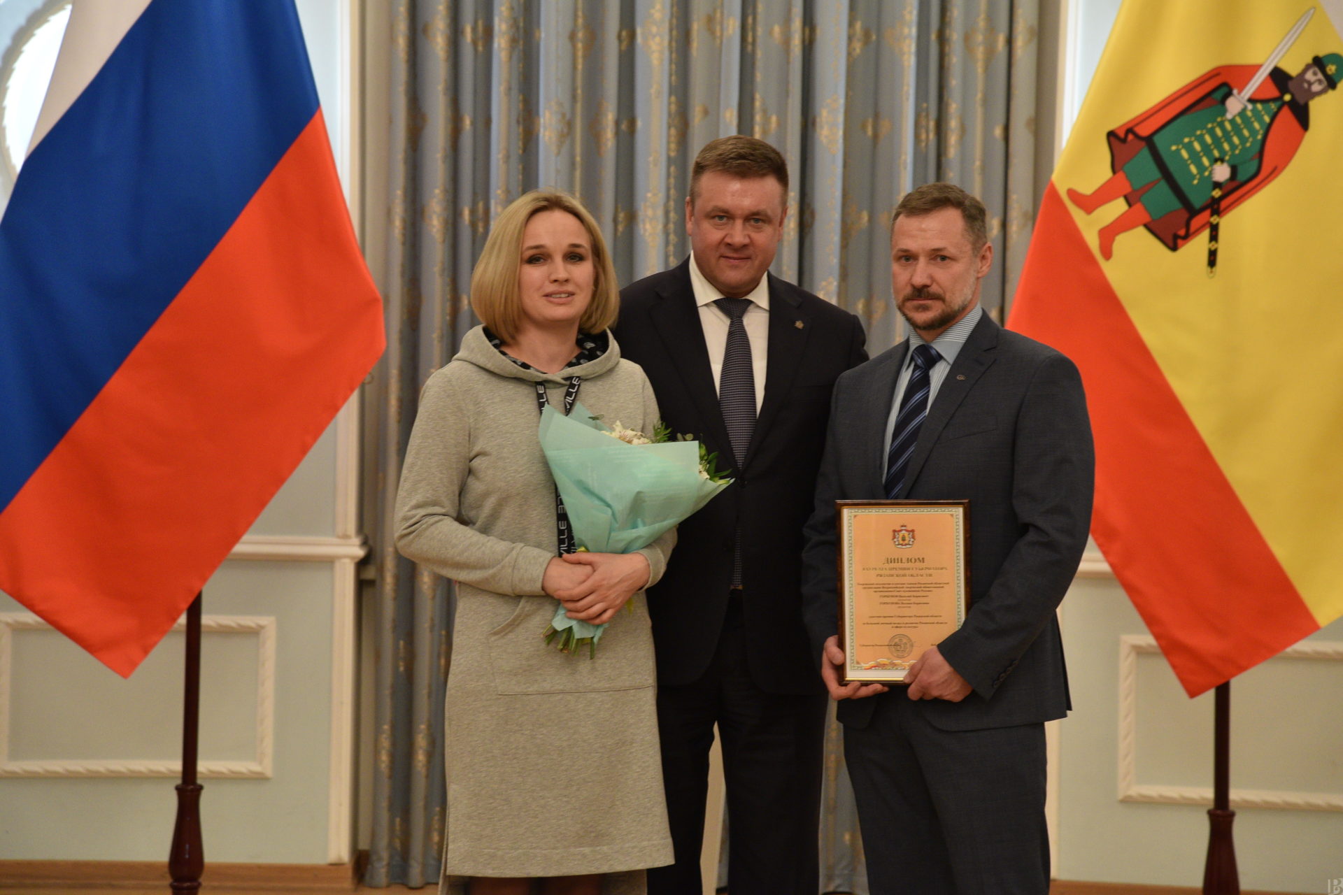 В правительстве региона губернатор Николай Любимов вручил государственные награды Российской Федерации, ведомственные награды Министерства цифрового развития, связи и массовых коммуникаций Российской Федерации, региональные знаки отличия и поощрений, премии Рязанской области имени академика Срезневского за 2019 год, а также наградил победителей и лауреатов областного смотра-конкурса на лучшую организацию шефской работы в системе образования.