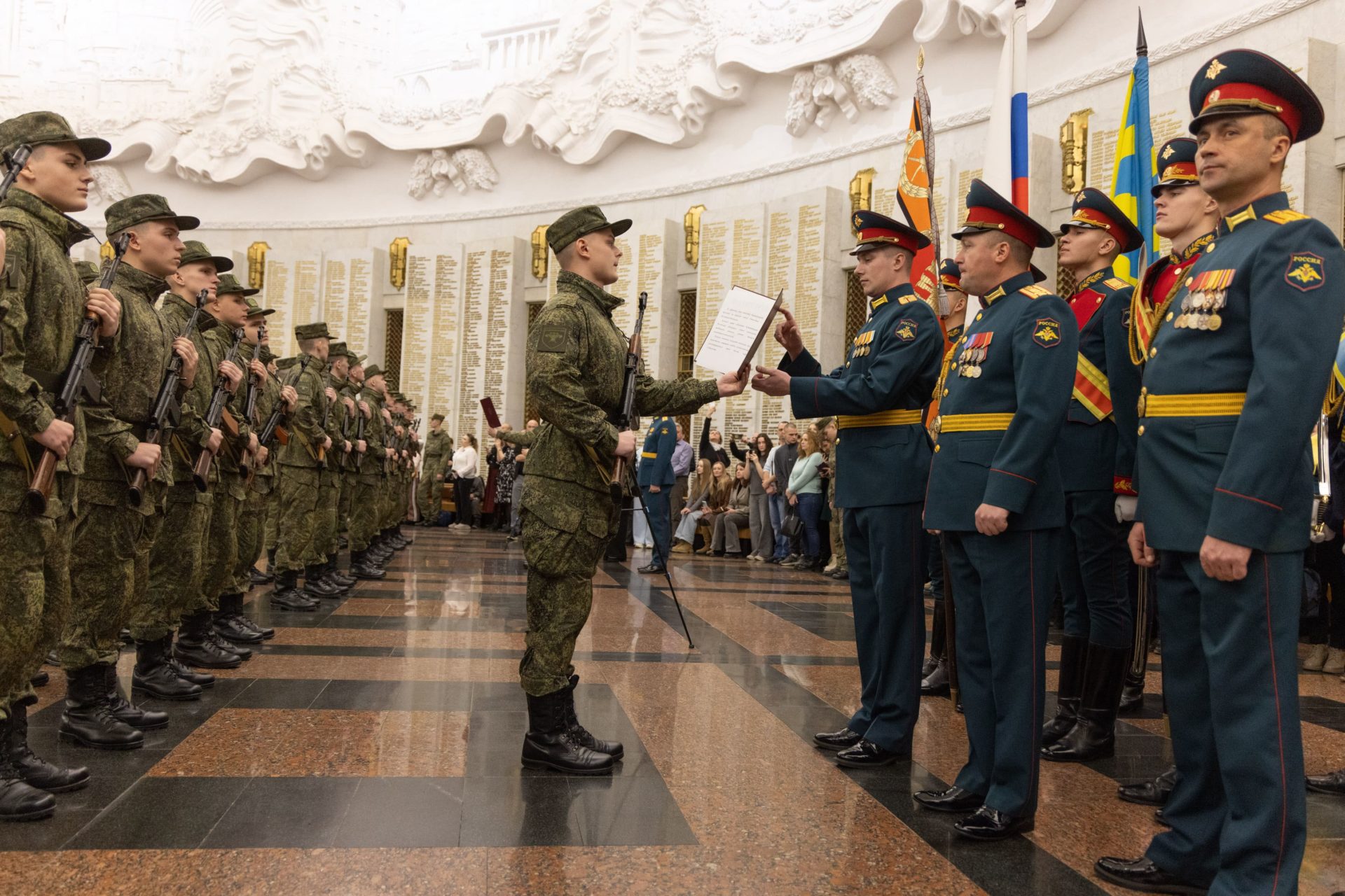 29 ноября в Музее Победы состоялся торжественный ритуал приведения к Военной присяге вновь прибывшего пополнения 154-го отдельного комендантского Преображенского полка. Новобранцы приняли присягу, дали клятву быть верным Отечеству, защищать свободу и независимость нашей страны и стали солдатами. Среди них — новобранцы из Рязанской области и других регионов Московского военного округа. В мероприятии также приняли участие представители командования полка, ветеранских и общественных организаций, родные новобранцев. Об этом сообщает Музей Победы.