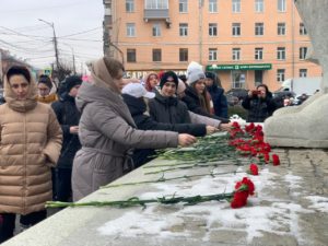 Их память почтили минутой молчания. Далее участники акции – замминистра образования и молодежной политики Сергей Хлыстов, исполняющий обязанности ректора РГУ имени С. А. Есенина Игорь Мурог, руководитель Рязанского регионального отделения «Волонтеры Победы», школьники, курсанты и все желающие горожане возложили цветы к мемориалу «Монумент Победы».