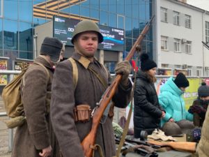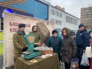 Акция продолжилась возле Муниципального культурного центра. Там все желающие могли попробовать кусочек хлеба, изготовленный по рецептуре, приближенной к блокадному. Ровно 125 грамм. Такая ежедневная норма на одного человека была установлена во время блокады Ленинграда.