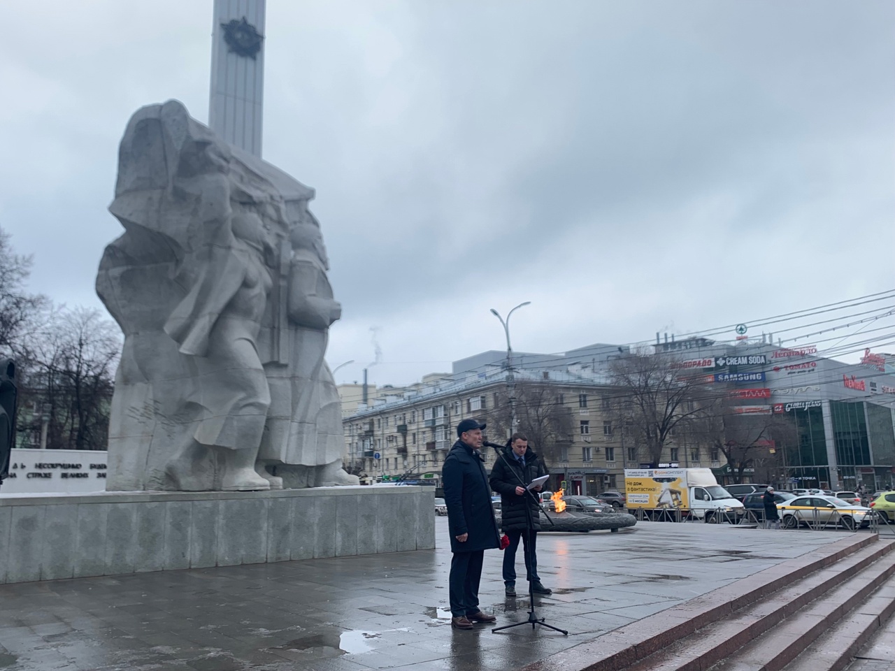 Их память почтили минутой молчания. Далее участники акции – замминистра образования и молодежной политики Сергей Хлыстов, исполняющий обязанности ректора РГУ имени С. А. Есенина Игорь Мурог, руководитель Рязанского регионального отделения «Волонтеры Победы», школьники, курсанты и все желающие горожане возложили цветы к мемориалу «Монумент Победы».