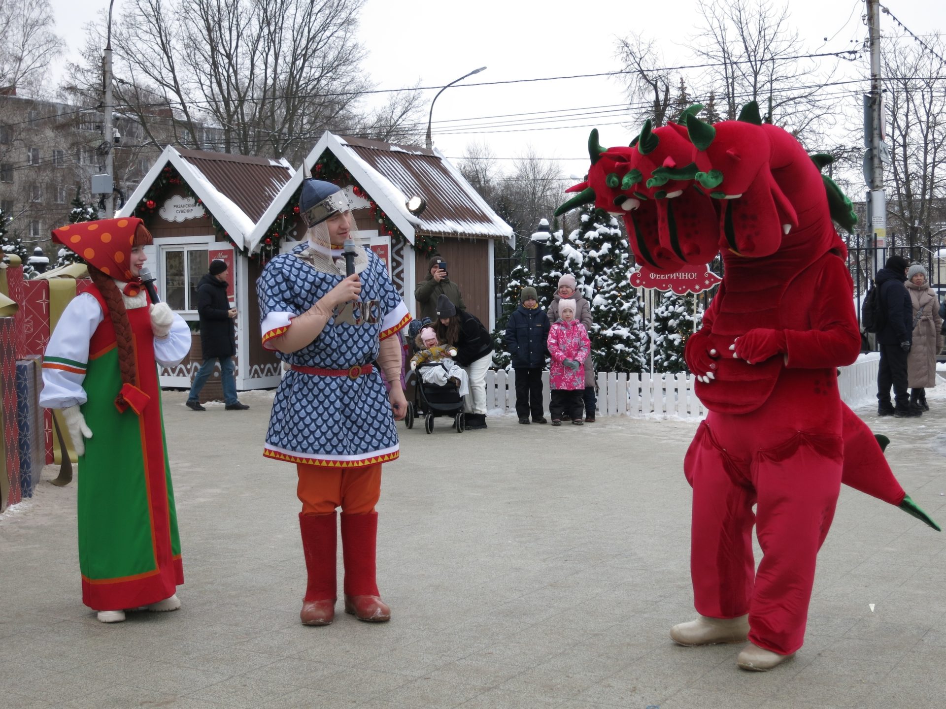 Настоящим праздничным подарком для детской аудитории стала анимационная интерактивная программа, которая полностью увлекла собой самых активных ребят. Рязанцев развлекали Любава и ее жених-богатырь, а также актер в облачении Змея Горыныча. Маленькие горожане и их родители пели, танцевали, водили хороводы. И, конечно, в этой сказке победило добро, а как же иначе.