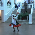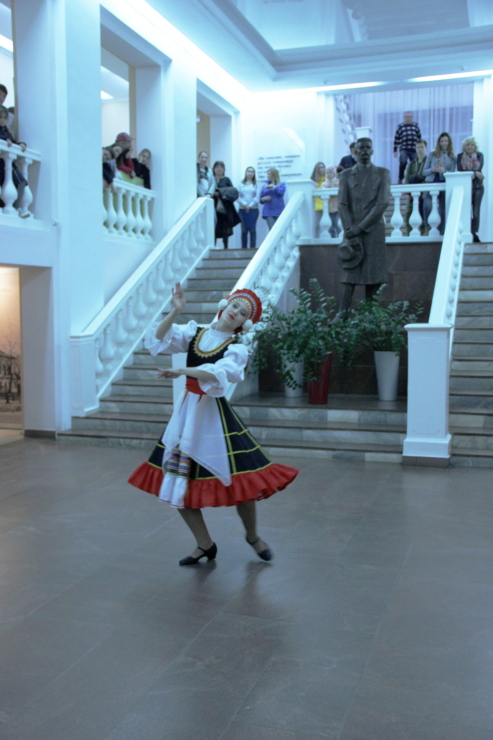 Завершилась “Библионочь” в холле у памятника Горькому. Танцоры студии “Отражение” исполнили народные танцы, а студия песочной анимации “Брим” показала световое шоу.