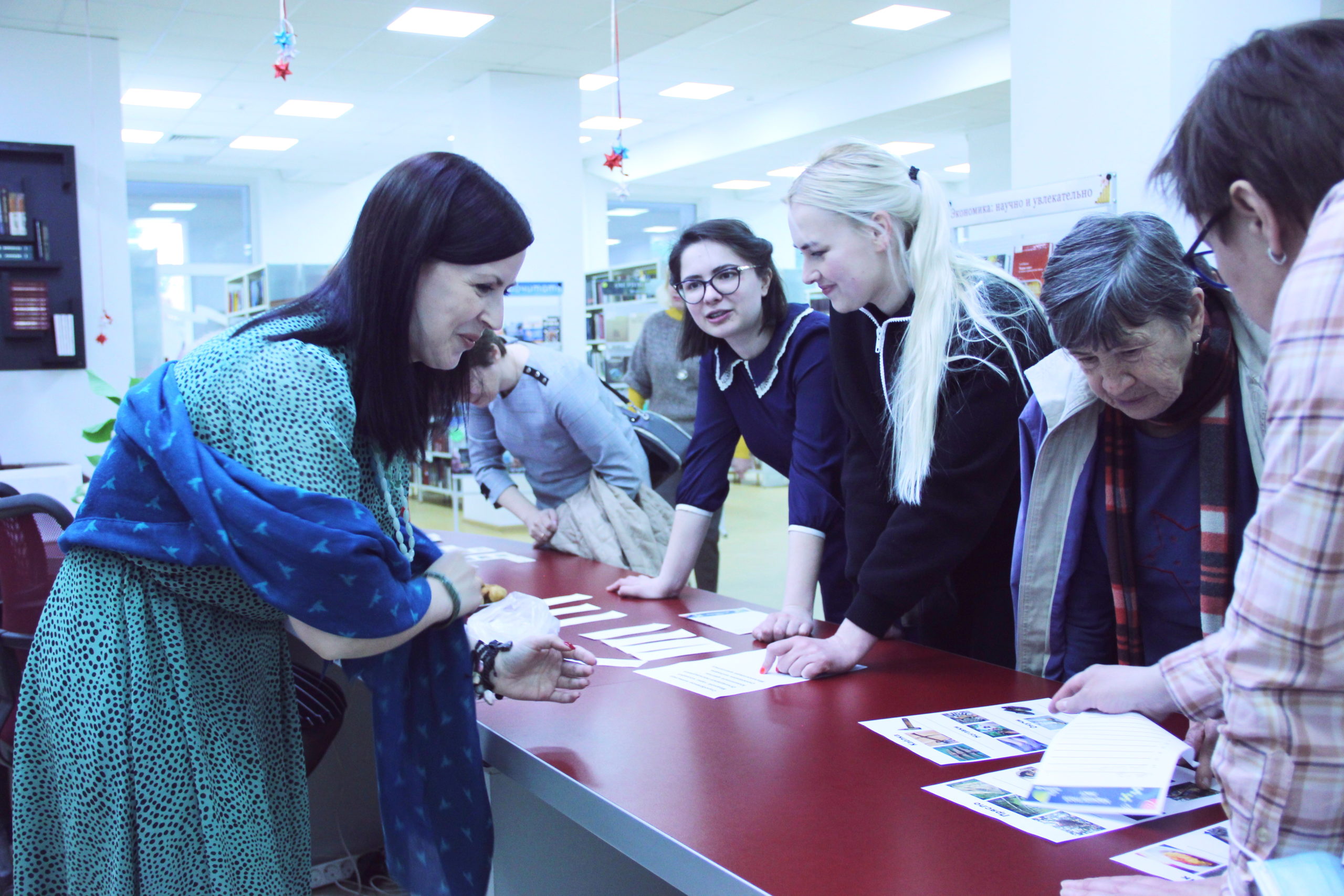 В течение вечера гости путешествовали по тематическим станциям, получая отметки в специальных бланках за выполнение заданий. Самым активным вручили призы от библиотеки Горького. Среди заданий были собирание пазлов с традиционными костюмами русских губерний, викторины, создание обережных кукол и другие.