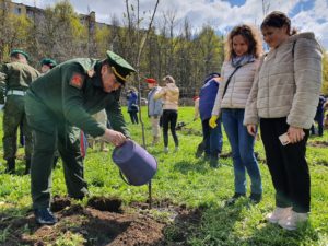 – У меня воевал прадедушка Иван Кузьмич, – говорит кадет-пограничник школы N.33 Анна Ротаенко. – У нас сохранились многие его награды, фотографии. Мне о нем рассказывает дедушка. Вот этим садом, который мы сегодня посадили, будут гордиться наши дети и внуки. Я не думаю, что у кого-то поднимется рука срубить какое-то из этих деревьев.