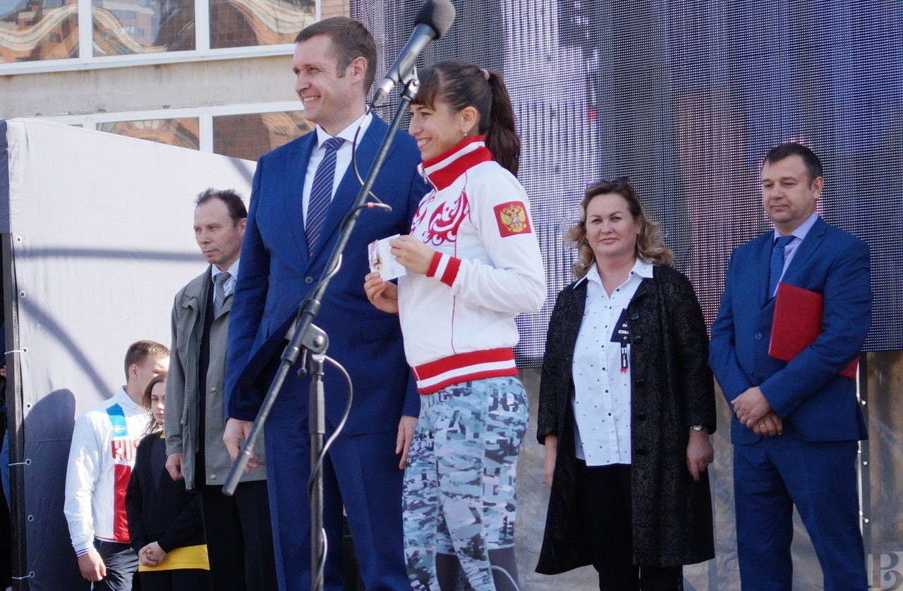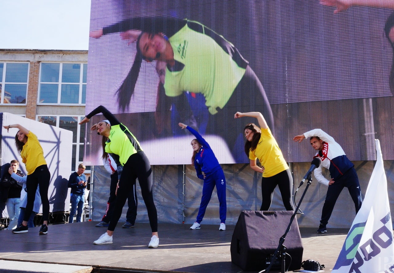 После приветственных слов и торжественной церемонии вручения знаков ГТО на подиум вышли участник Олимпийских игр, победитель и призер чемпионатов мира, Европы и Европейских игр по дзюдо Михаил Пуляев, чемпион мира и Европы по гиревому спорту Иван Кулаков, чемпионка мира по дзюдо Марина Воробьева. Поддержку в демонстрации упражнений им обеспечивали представители фитнес – центра «Графит».