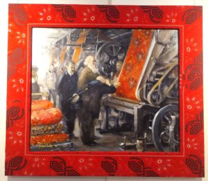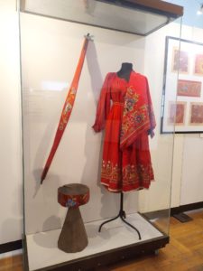 Многие экспонаты предоставил музей «Александровская слобода» из Владимирской области. Древнерусская крепость, бывшая в том числе резиденцией Ивана Грозного, хранит много сведений о Троице-Александровой мануфактуре купцов Барановых – крупнейшего текстильного центра России. Узоры для «барановских ситцев» рисовали выходцы из крестьян, и их творческие находки неоднократно высоко оценивали на международном уровне: так, знаменитый узор «Смородиновый лист» получил золотую медаль Всемирной выставки в Париже в 1899 году. Эту ткань тоже можно увидеть на выставке.