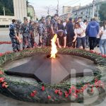 Собравшиеся на площади Победы рязанцы в память о беспримерном подвиге погибших в годы Великой Отечественной войны земляков выложили на гранитном постаменте у Вечного огня из десятков свечей слова “Я помню”.