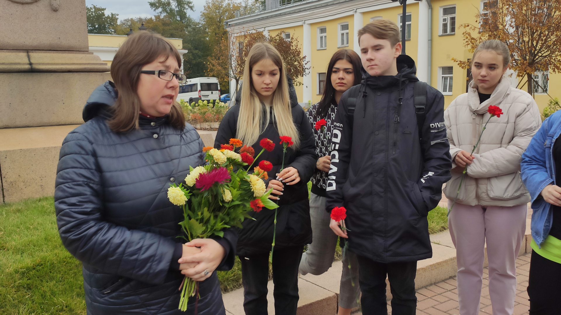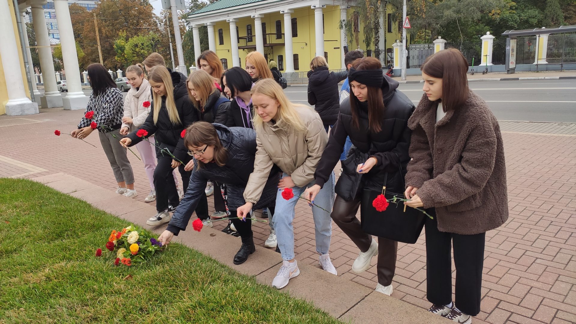 Студенты возложили красные гвоздики к памятнику нобелевского лауреата.