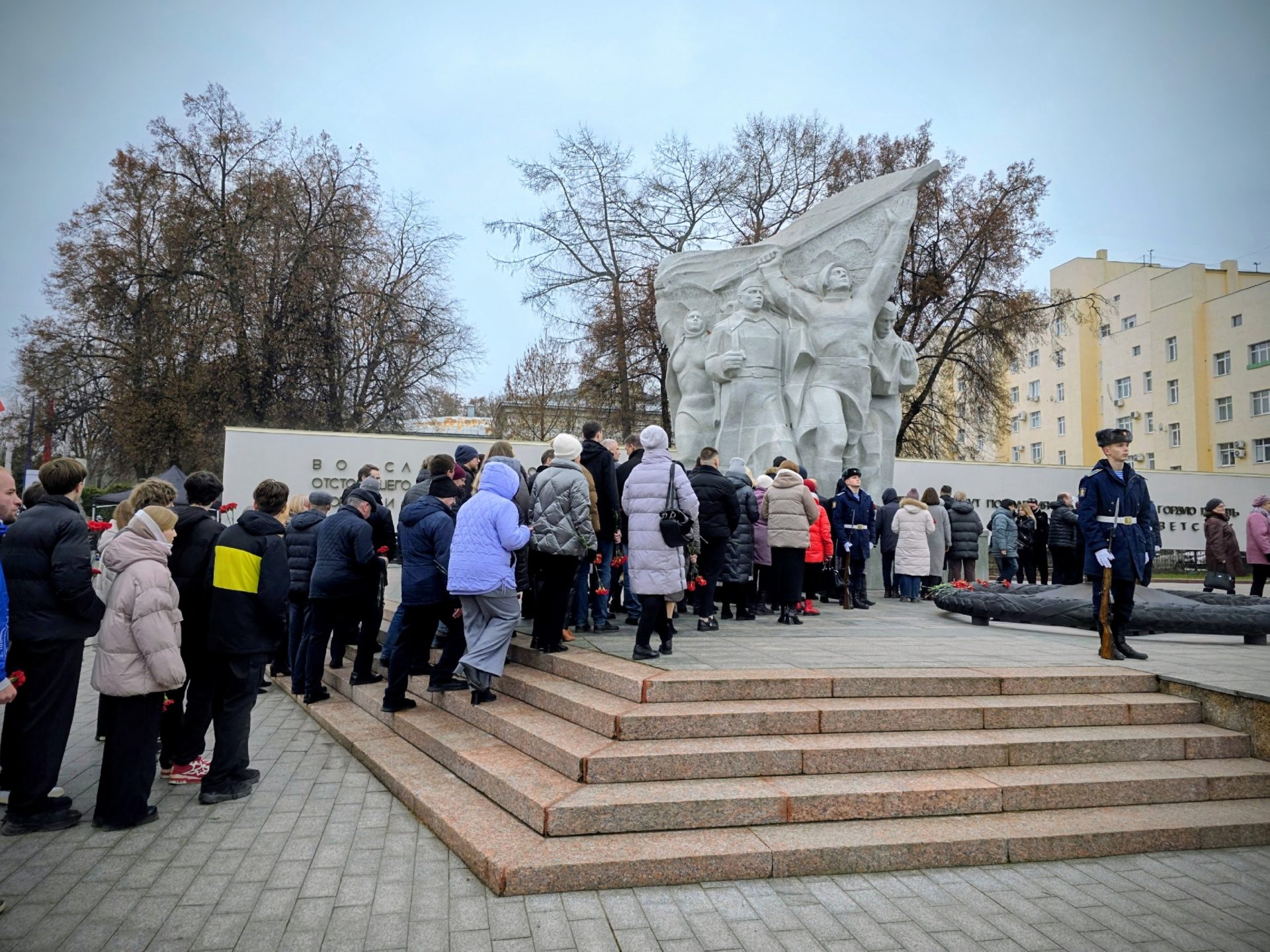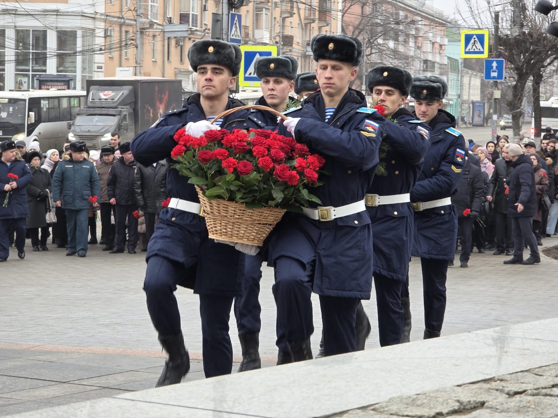 Цветы к «Монументу Победы» возложили первый заместитель председателя правительства Денис Боков и начальник Рязанского высшего воздушно-десантного ордена Суворова дважды Краснознамённого командного училища имени генерала армии В.Ф.Маргелова, гвардии полковник Олег Пономарёв.