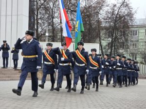 Торжественная церемония возложения цветов на площади Победы началась с минуты молчания. Курсанты Рязанского гвардейского высшего воздушно-десантного ордена Суворова дважды Краснознамённого командного училища имени генерала армии В.Ф.Маргелова возложили к мемориалу «Монумент Победы» гирлянду воинской славы.