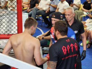 Первый поединок “Битвы за Рязань” в весовой категории 70.3 килограммов выиграл воспитанник Спасской спортивной школы “Евпатий Коловрат”Даниил Горшков. Его первый тренер – Дмитрий Князев (директор спортивной школы “Евпатий Коловрат”). Сейчас Даниил учится в Рязанском педагогическом коллелже и тренируется у Артема Казбанова.