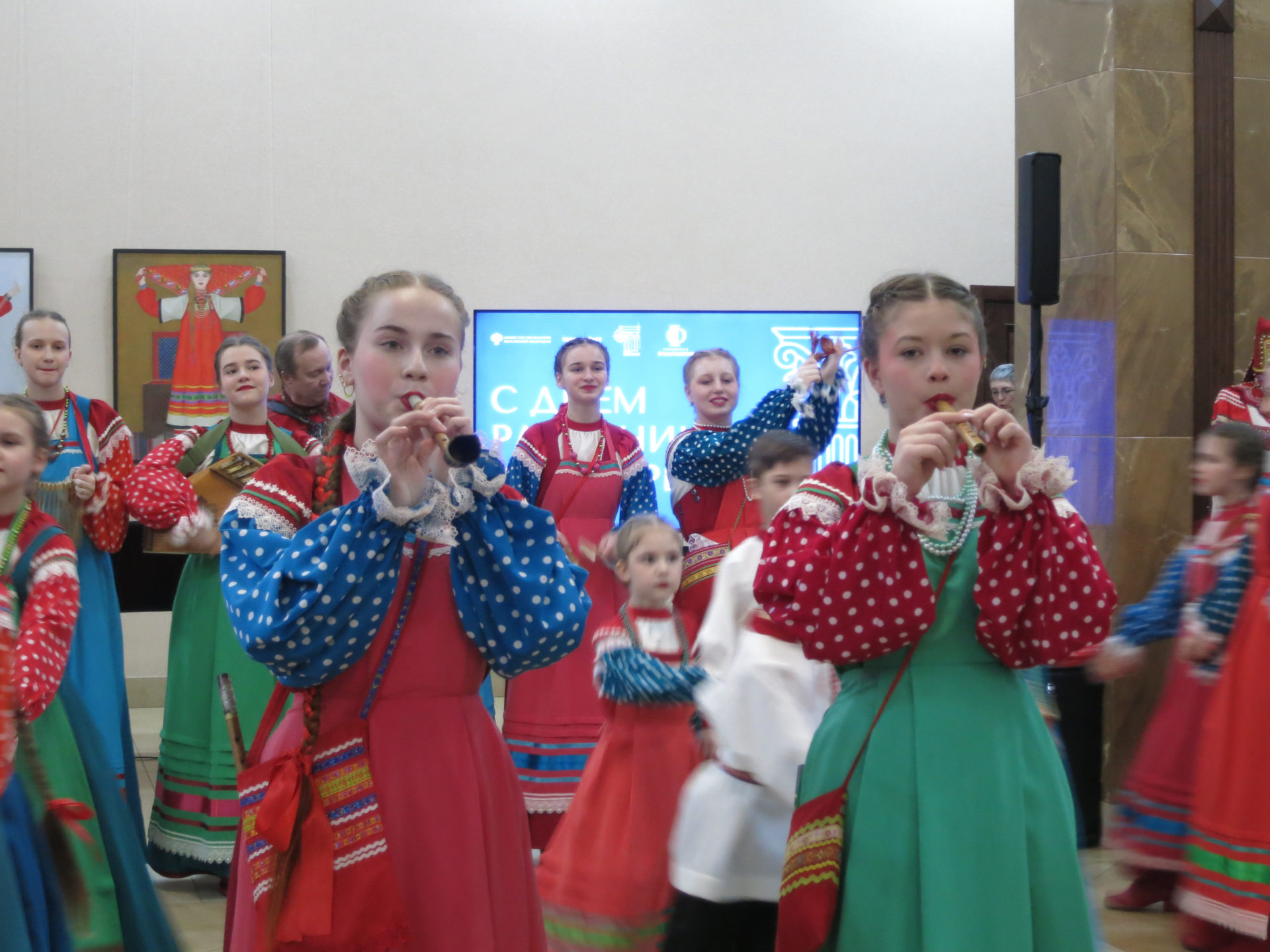 Завершило открытие выставки выступление детской творческой студии при Рязанском государственном академическом хоре имени Евгения Попова. Руководитель коллектива Ольга Терехова отметила, что её воспитанники выступают перед публикой с четырьмя народными песнями.
