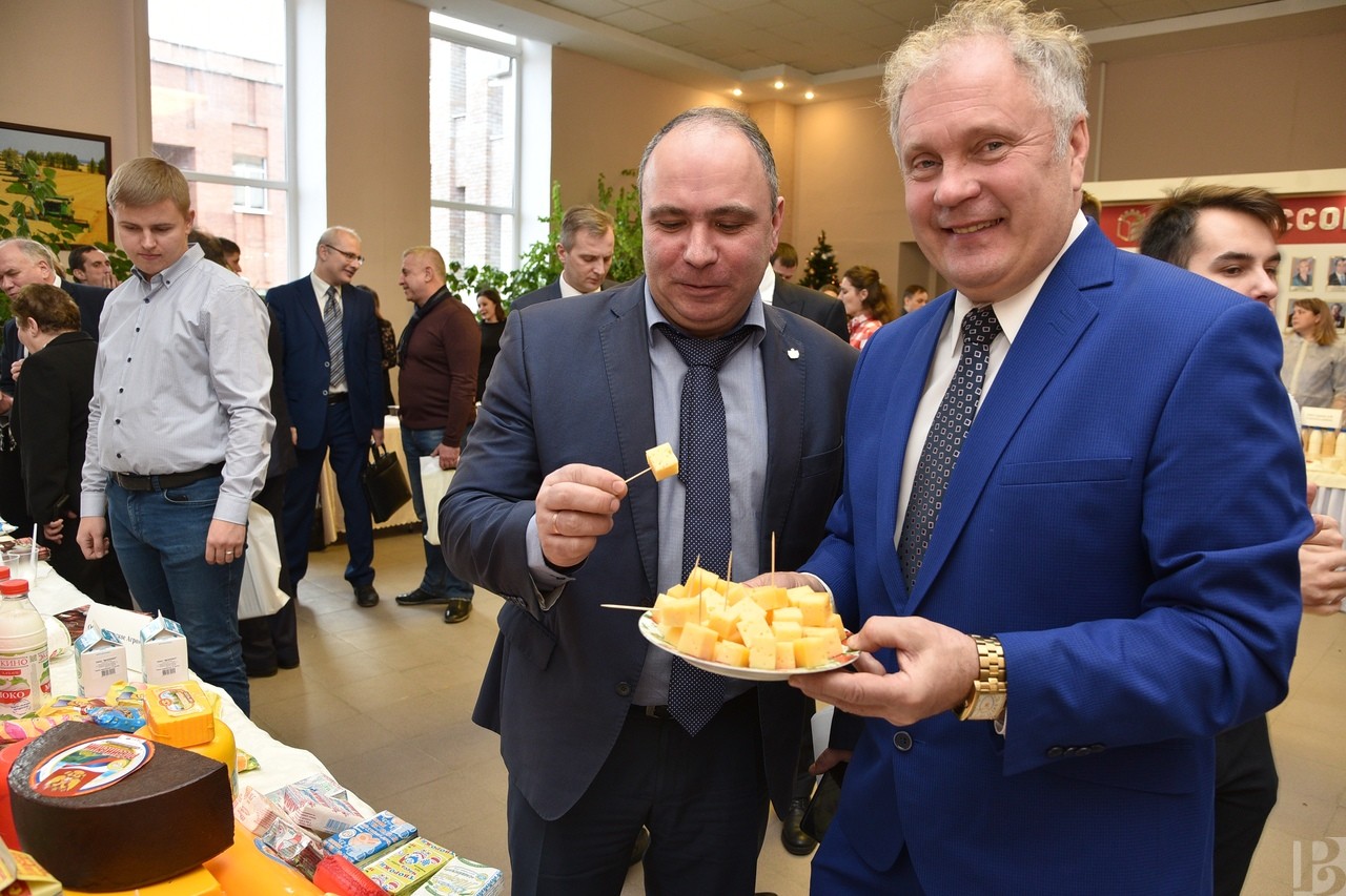 В фойе ведущие предприятия молочной переработки и фермеры устроили выставку образцов своей продукции с возможностью продегустировать каждый экспонат. В регионе производят цельное молоко всего спектра жирности, десятки разновидностей сыров, в том числе и благородные твердые сорта долгого созревания, а также творог, простоквашу, йогурты и многое другое. Продукция не содержит примесей, поскольку натурального молока хватает всем, и часть его даже отправляется на переработку в соседние регионы.