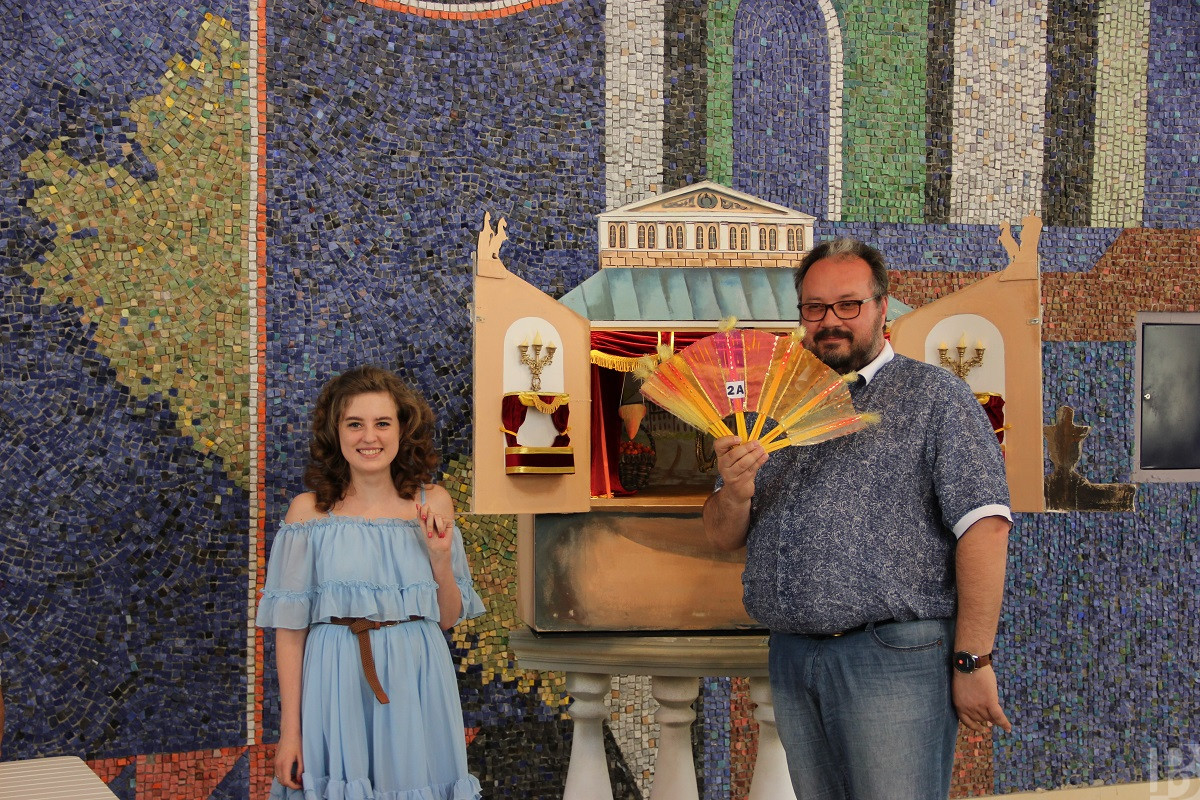 Из жеребьевки команд-участниц сделали небольшой перформанс, чтобы добавить театральности спортивному ритуалу. Представители команд подходили к макету театра, в котором за бархатным занавесом находились различные предметы – от вешалки до веера и зеркала. Вытащив любой из них, участник получал номер команды и группы.