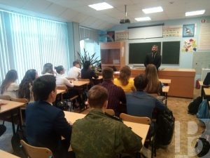 Занятие прошло в канун празднования 100-летия со дня образования Рязанского десантного училища им. В.Ф. Маргелова. Его провел член регионального штаба ОНФ, участник боевых действий в Афганистане Сергей Караев. Он рассказал ребятам о подвигах сослуживцев, участников боевых действий в Афганистане, а также поднял вопрос о жизненном выборе будущих выпускников. Он отметил важность такого качества как мужество.