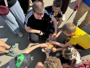 Ребята поиграли с собачками и посмотрели фильм о работе пушистых волонтеров.
