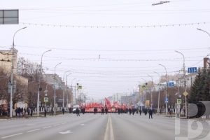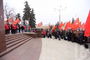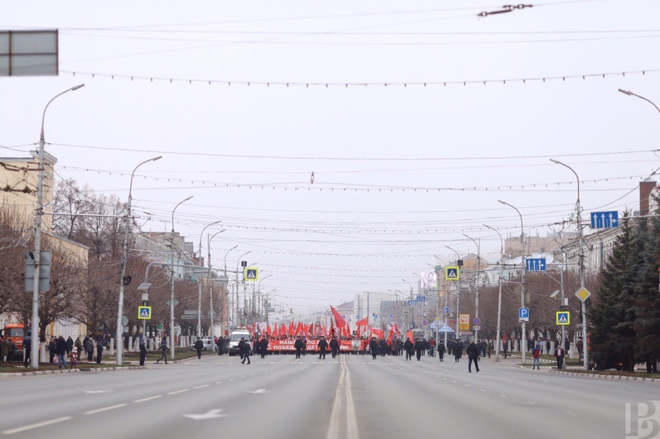 Колонна демонстрантов с красными флагами и транспарантами с символикой КПРФ, портретами В.И.Ленина и И.В.Сталина и соответствующими программным целям и текущему моменту лозунгами прошествовала от площади Победы к центру города. В колонне прошли как убежденные сторонники коммунистической идеологии, так и те, кто традиционно в этот день выходит на демонстрацию.