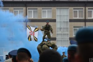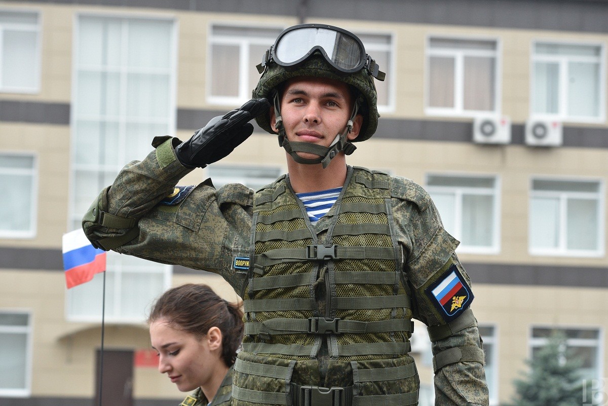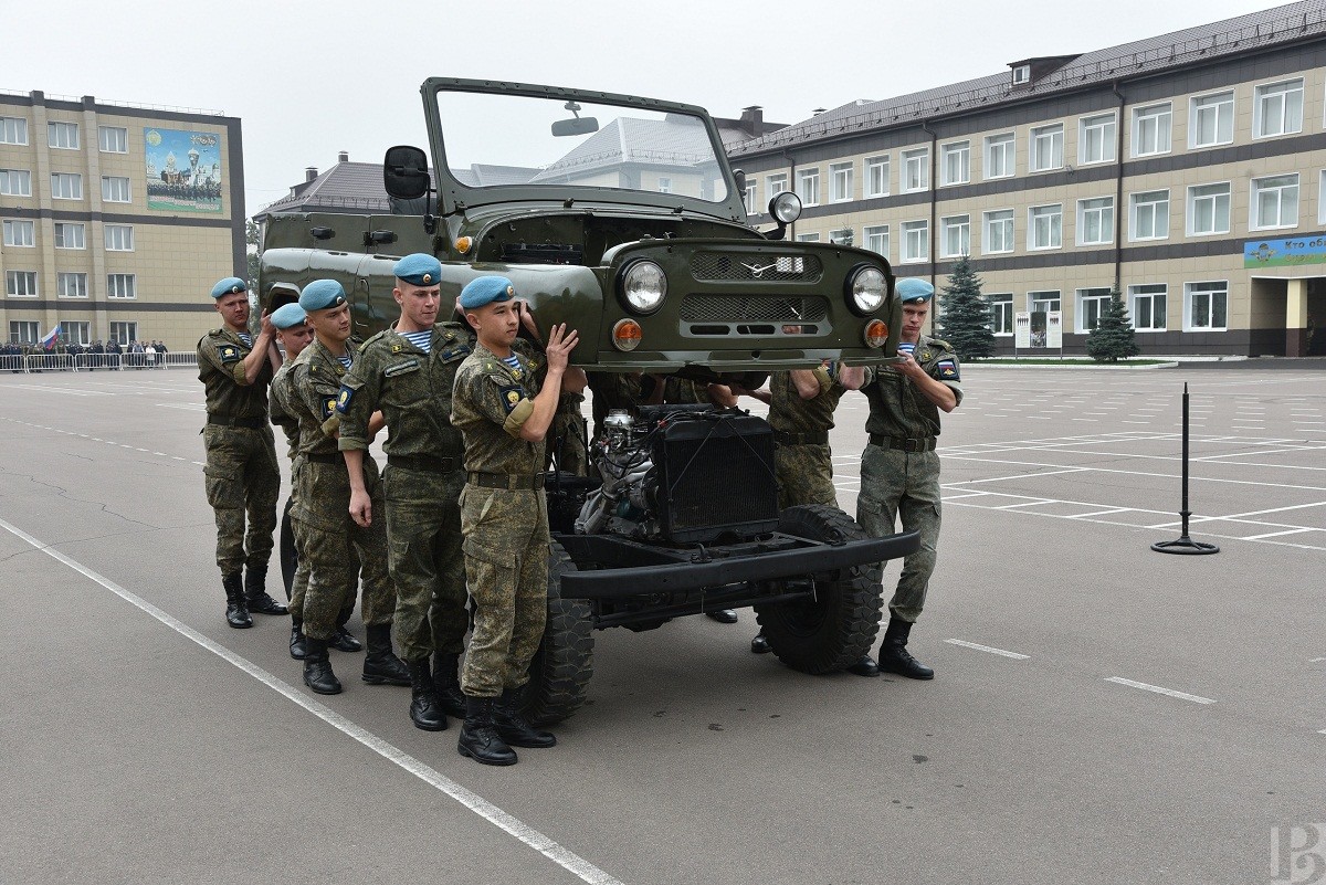 После команды “вольно” первокурсники попали в объятия родных и друзей. Завершились торжества показательными выступления курсантов старших курсов на плацу. Они продемонстрировали приемы рукопашного боя. С разборкой и сборкой оружия гвардейцы справляются лихо, но так же быстро они разобрали и собрали автомобиль УАЗ.