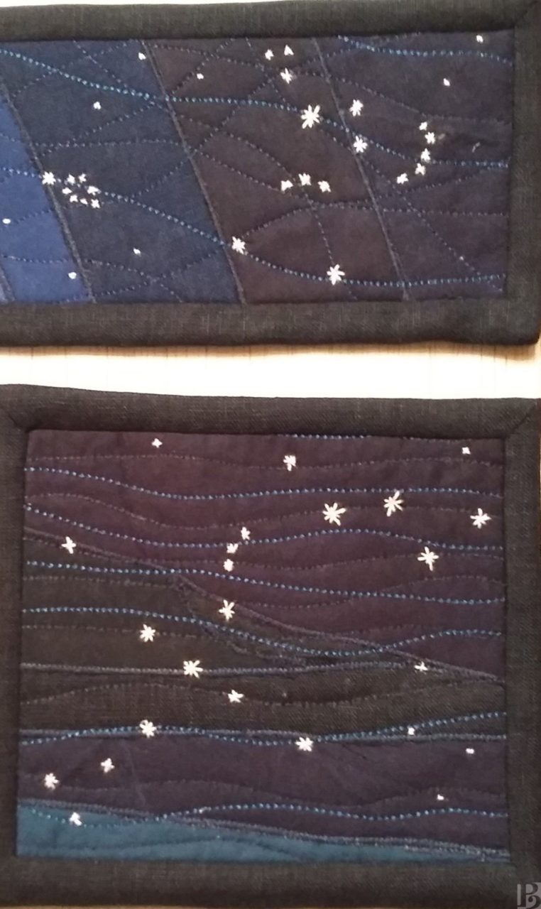 А Елена Венедиктова представила серию декоративных панно “Ожидание”. Шесть миниатюр появлялись одна за другой и образуют полноценную историю, пояснила Елена Васильевна: “Я работала над этой серией в течение недели. Нашла свою старую фотографию, где котенок сидит в темноте на подоконнике. Сшила его, потом панно с луной, на которую смотрит котенок. Добавила ночное небо с созвездиями. Но это были разрозненные картины! И тогда появились еще два фрагмента с небом, а под конец – панно с горящим окном и фигурой матери и ребенка. Сейчас мы смотрим в окна, мечтаем о хорошем будущем, и этот вечерний свет – символ надежды” – рассказала мастерица. По словам Елены Васильевны, ей и коллегам по объединению помогает поддерживать хорошее настроение шитье, общение по телефону и преподавание. А по завершении карантина мастерицы планируют показать все новые работы на специальной выставке. Следить за творчеством рукодельниц “ДАРа” можно в группе ВКонтакте.