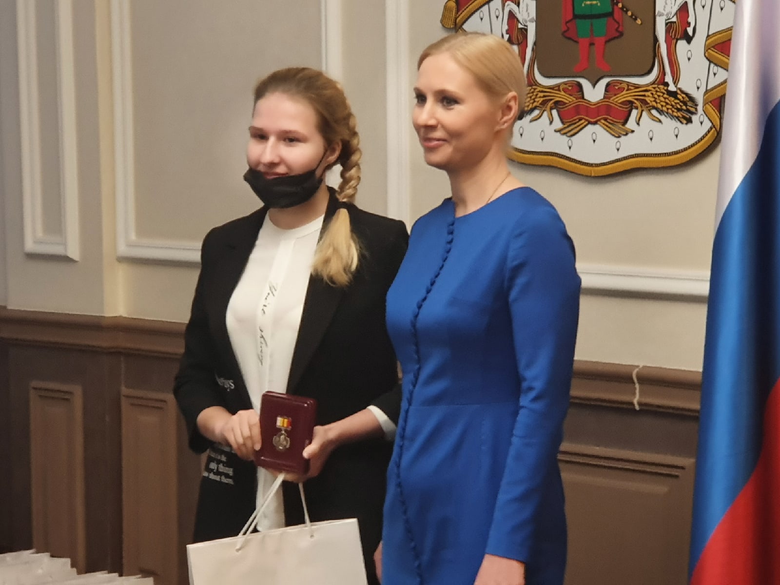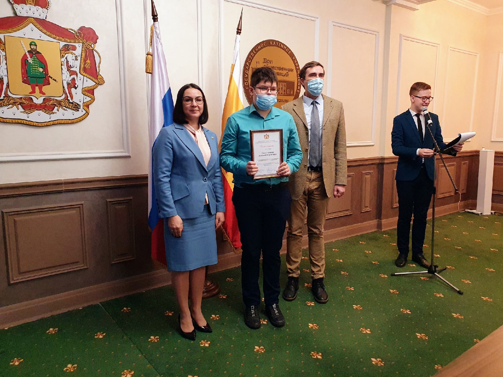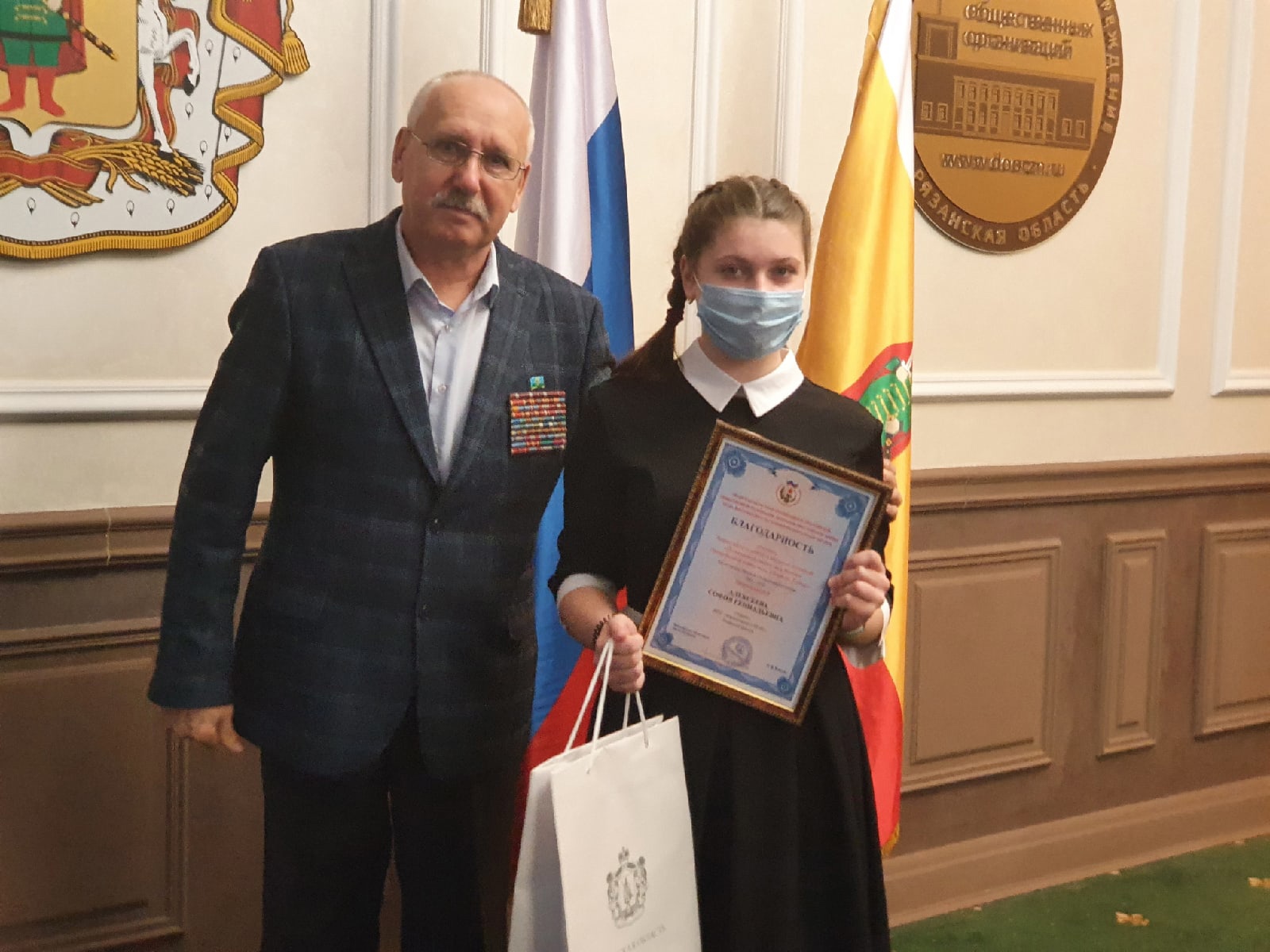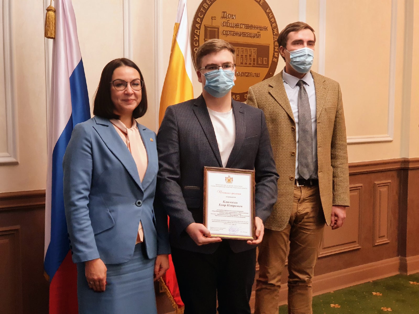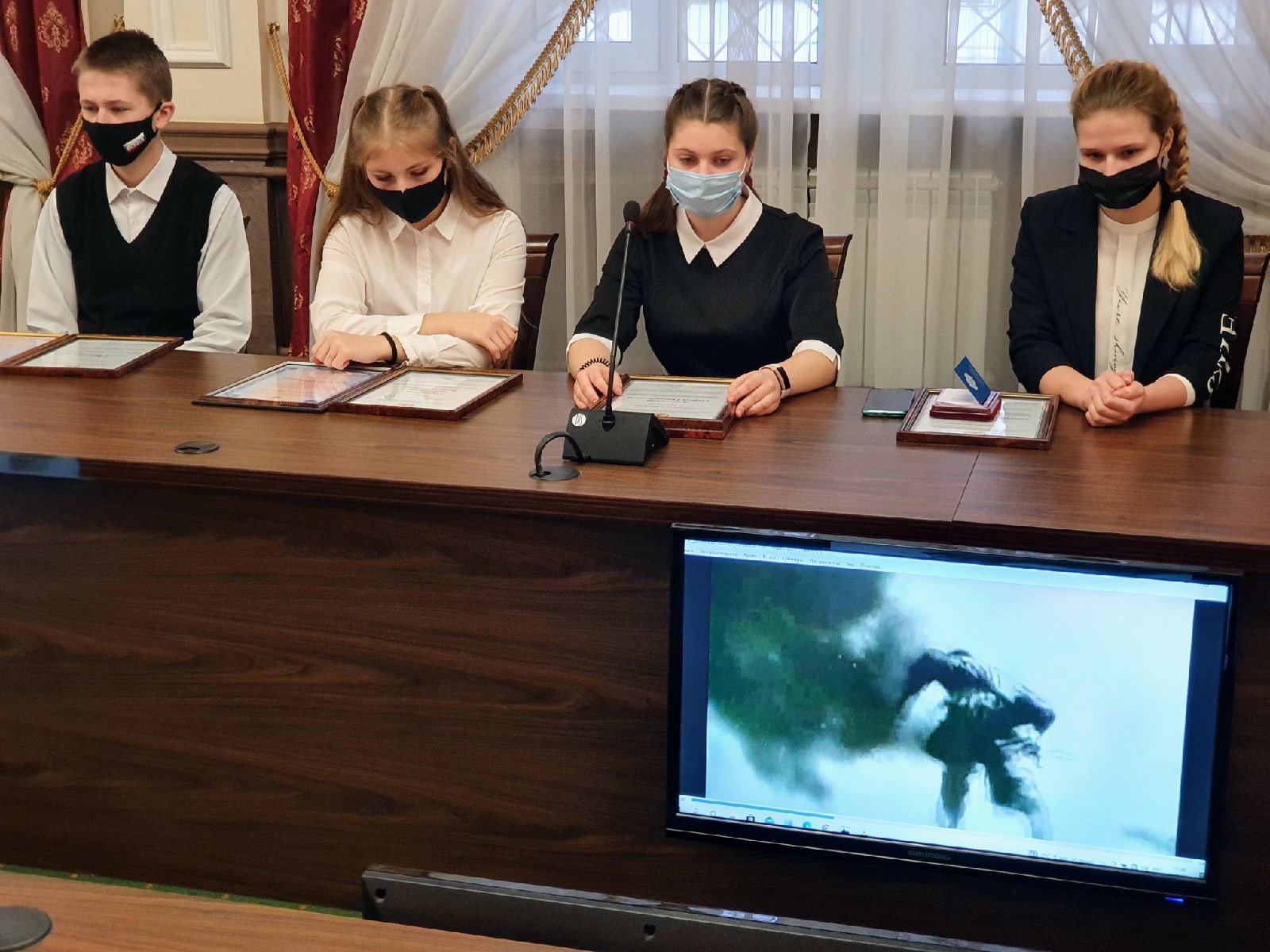 За активную гражданскую позицию и большой вклад в увековечение памяти героев Великой Отечественной войны 1941-1945 годов Почетной грамотой министерства по делам территорий и информационной политике ребят наградили министр Жанна Фомина и заместитель министра образования и молодёжной политики Рязанской области Александр Лощинин.
