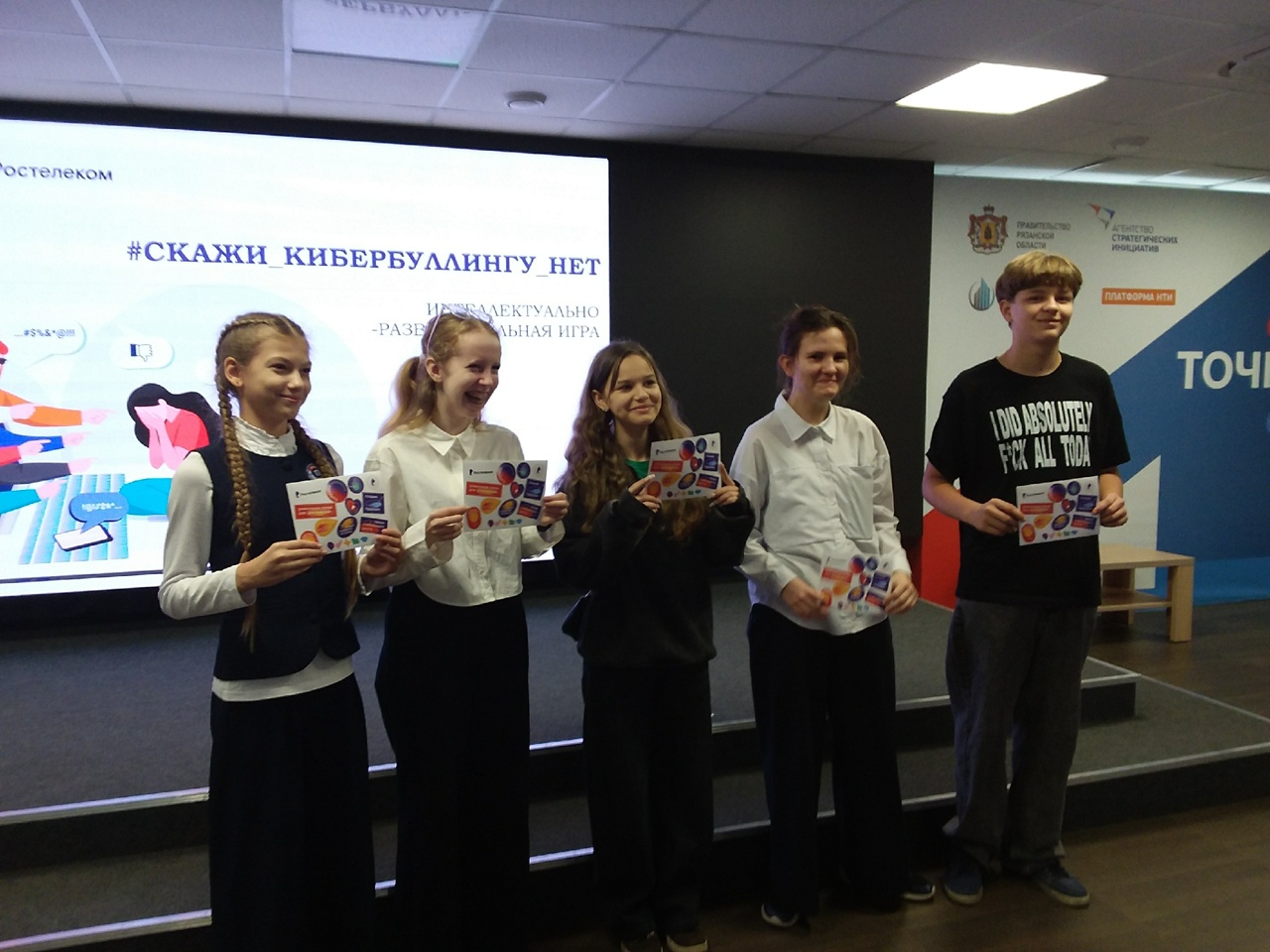 Сегодня в Рязани, в «Точке кипения», состоялась интеллектуально-развлекательная игра для школьников в рамках проекта «Скажи кибербуллингу нет».