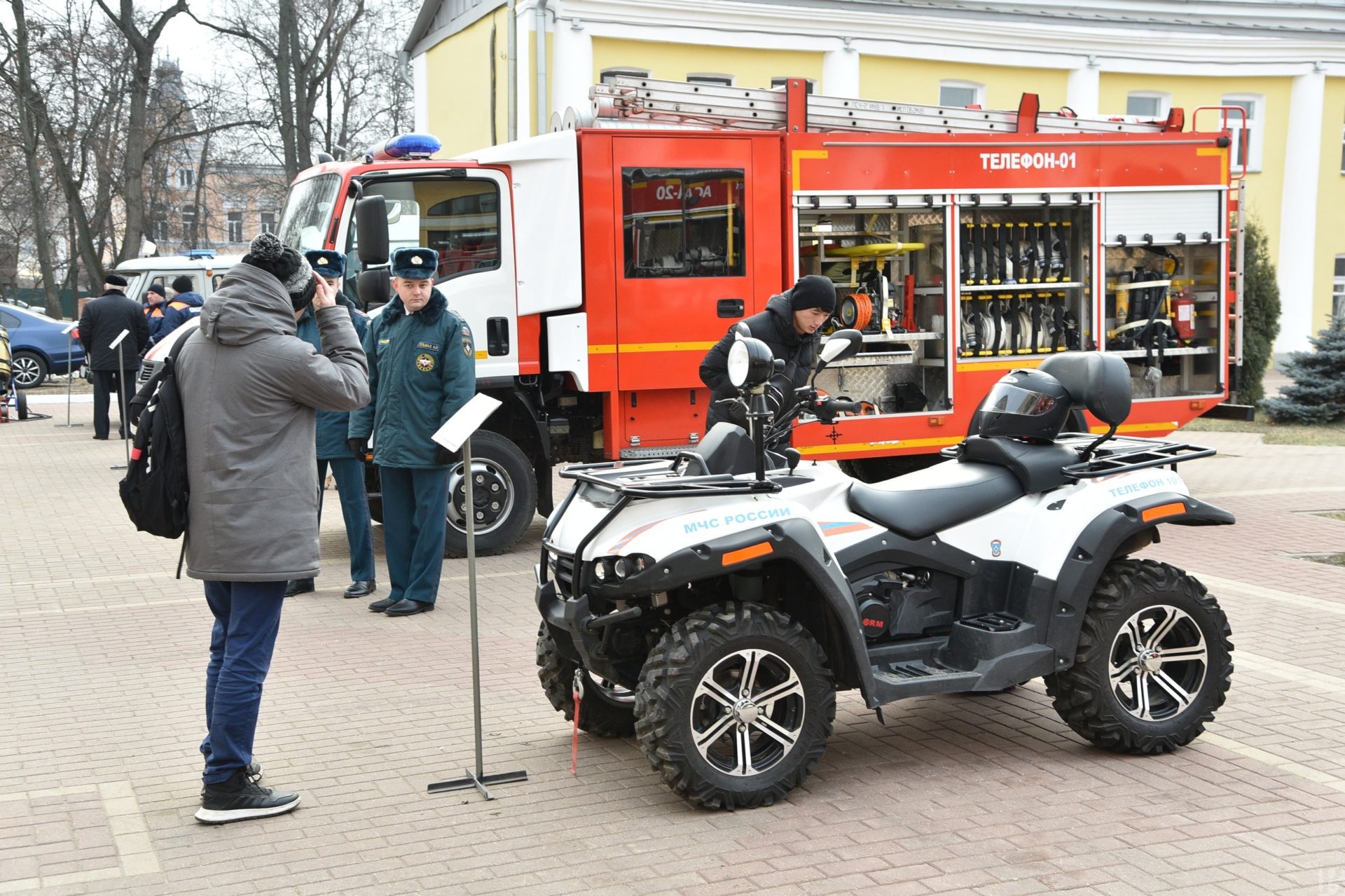 На площадке перед областной филармонией была размещена новейшая техника, которая находится на службе МЧС. В фойе подробная выставка рассказывала о передовых разработках в области спасения жизни на пожаре, системах сигнализации и тушения огня. Отдельно презентовали обучающую компьютерную игру для школьников, которая предполагает отработку безопасного поведения на пожаре при помощи очков виртуальной реальности.