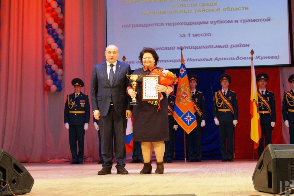 Сергей Филиппов рассказал о том, как обеспечивали безопасность людей во время весеннего половодья, пожароопасного периода, отопительного сезона. При этом главной задачей было не допустить гибели людей. В организации профилактической работы главное внимание уделялось взаимодействию с муниципалитетами. В областном конкурсе победителем среди муниципалитетов стал и получил переходящий кубок Рязанский район, на втором месте – Рыбновский район и на третьем – Старожиловский район.