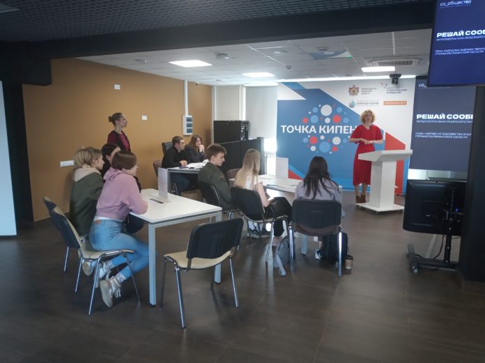 В “Точке кипения” впервые прошла интеллектуально-развлекательная игра “Решай сообща!”. Это первый этап серии подобных игр. Его посвятили народно-художественным промыслам Рязанской губернии. Идея родилась из работ студентов РГУ, обучающихся по направлению “коммуникативный дизайн”. Проходя практику, они разрабатывали фирменный стиль для предприятий народно-художественных промыслов и решили разобраться в теме глубже. В игре приняли участие они и учащиеся архитектурных направлений рязанского Политеха. Организовала проект креативная лаборатория “Сообщество” АНО “Центр креативных индустрий”. Вопросы интеллектуальной игры рассчитаны на тех, кто по-настоящему глубоко изучает традиционные народные промыслы разных рязанских уездов. Игрокам предлагали отличить по внешнему виду кадомскмй вениз от французских кружев, разобраться в том, какие растения чаще всего изображались в касимовской росписи и ответить на вопрос, что связывает скопинскую керамику и образ дракона. Отвечать на вопросы следовало после коллективного обсуждения в команде, работая сообща. В игре состязались 10 команд по 4 человека в каждой.