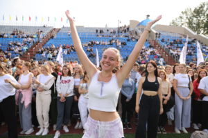 Молодые рязанцы повторяли движения за известными фитнес-тренерами города и спортсменами: Иваном Кулаковым – мастером спорта международного класса и преподавателем физкультуры в РязГМУ, Матвеем Арсеновым – мастером спорта по гребле на байдарках на каноэ, многократным победителем и призером чемпионата России.