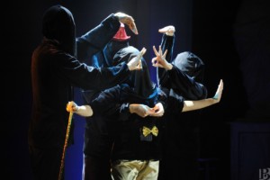 Вечер открылся парадом рязанских театров с флагами учреждений, после чего в зале появились Деды Морозы – бессменные театральные персонажи и главные герои новогодних спектаклей. Именно они «зажгли» импровизированный «Олимпийский огонь». После этого артисты разыгрывали перед зрителями сценки, посвященные закулисной жизни, повседневной работе, поискам вдохновения и другим темам. Каждый театральный коллектив представил свою ироничную и глубокую историю-притчу на злобу дня: например, артисты театра драмы Юрий Борисов и Александр Зайцев никак не могли решить исход шахматной партии, а примирил противников за доской «новый худрук» – Герой России Андрей Красов. Публика увидела зарисовки с кукольными персонажами, музыкальные и танцевальные номера.